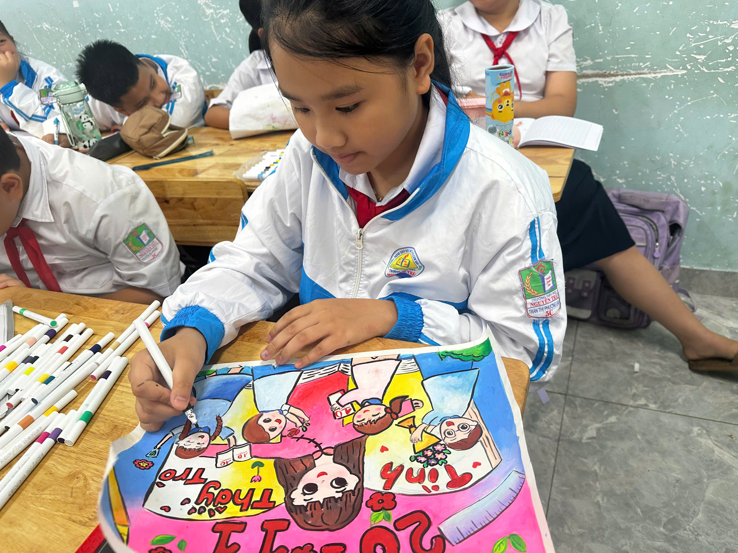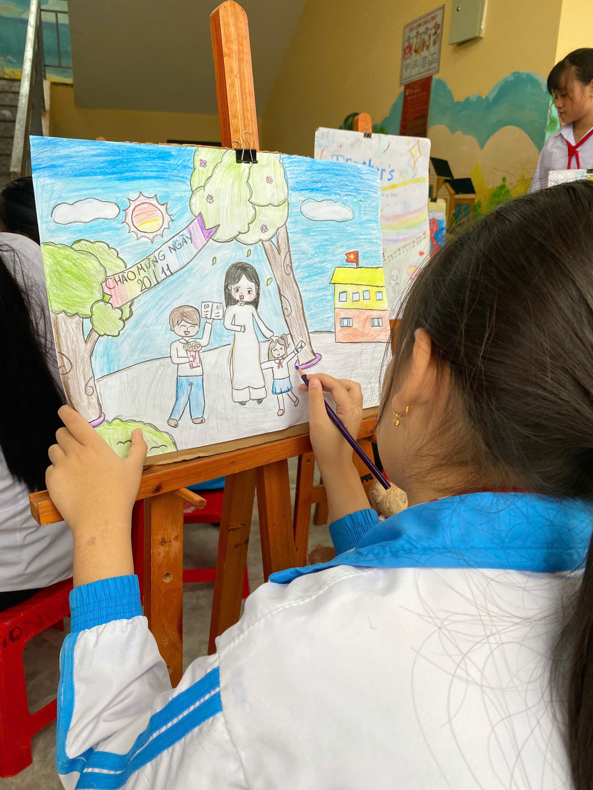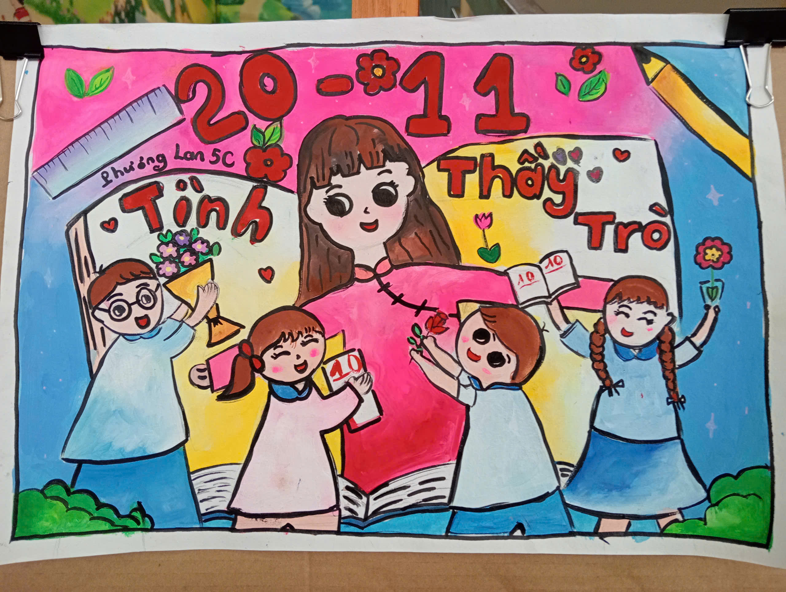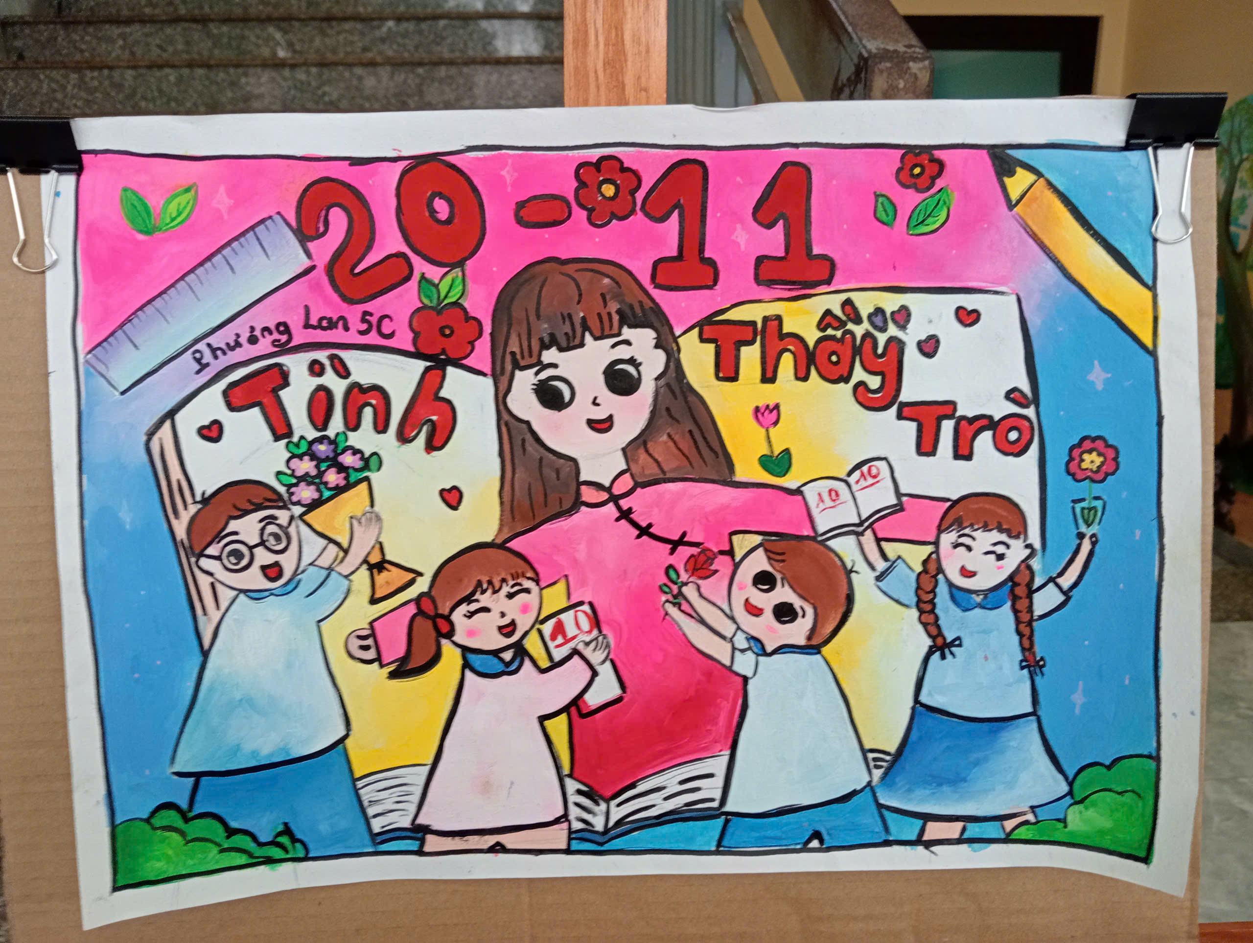 Thi vẽ tranh chủ đề “Chào mừng Ngày Nhà giáo Việt Nam” với nhiều tác phẩm sáng tạo, giàu ý tưởng, phản ánh tình cảm trong trẻo của học trò đối với mái trường và thầy cô.