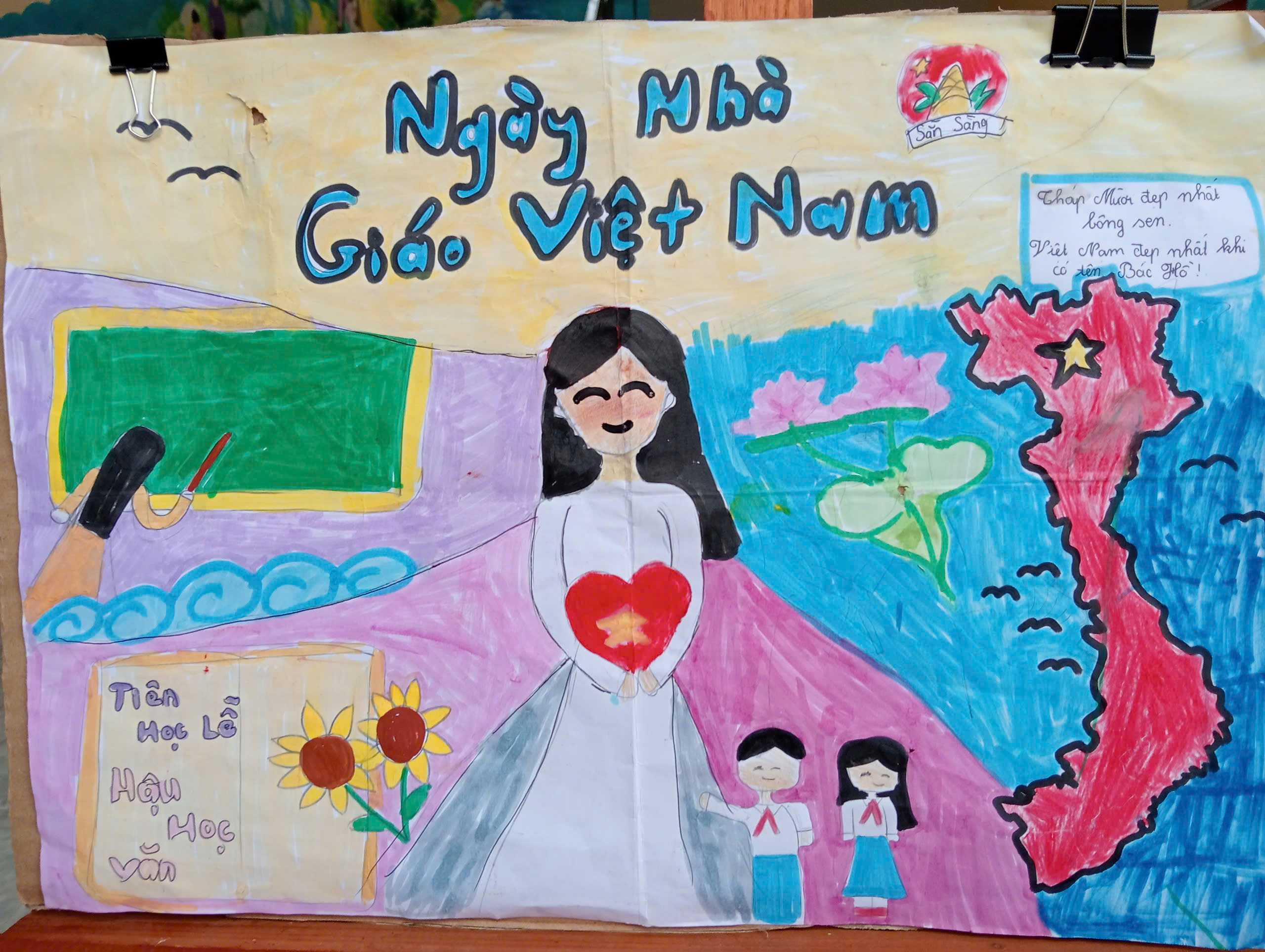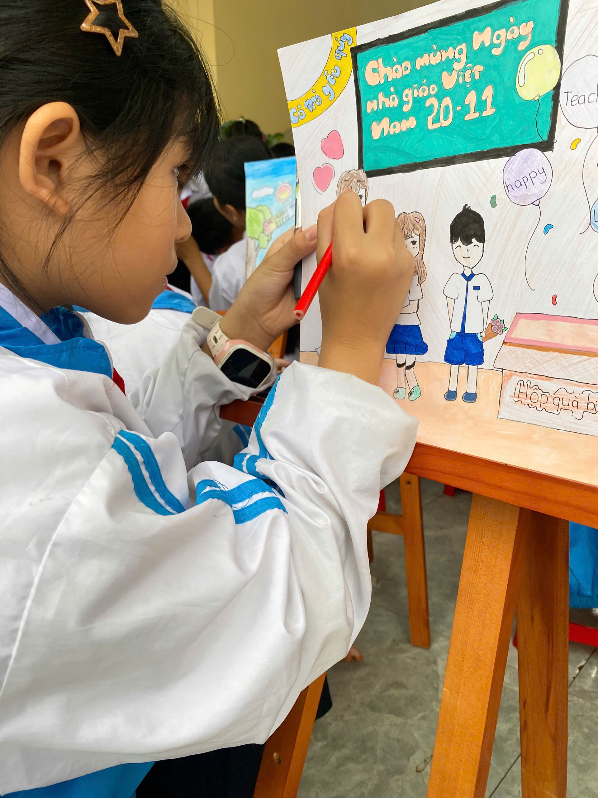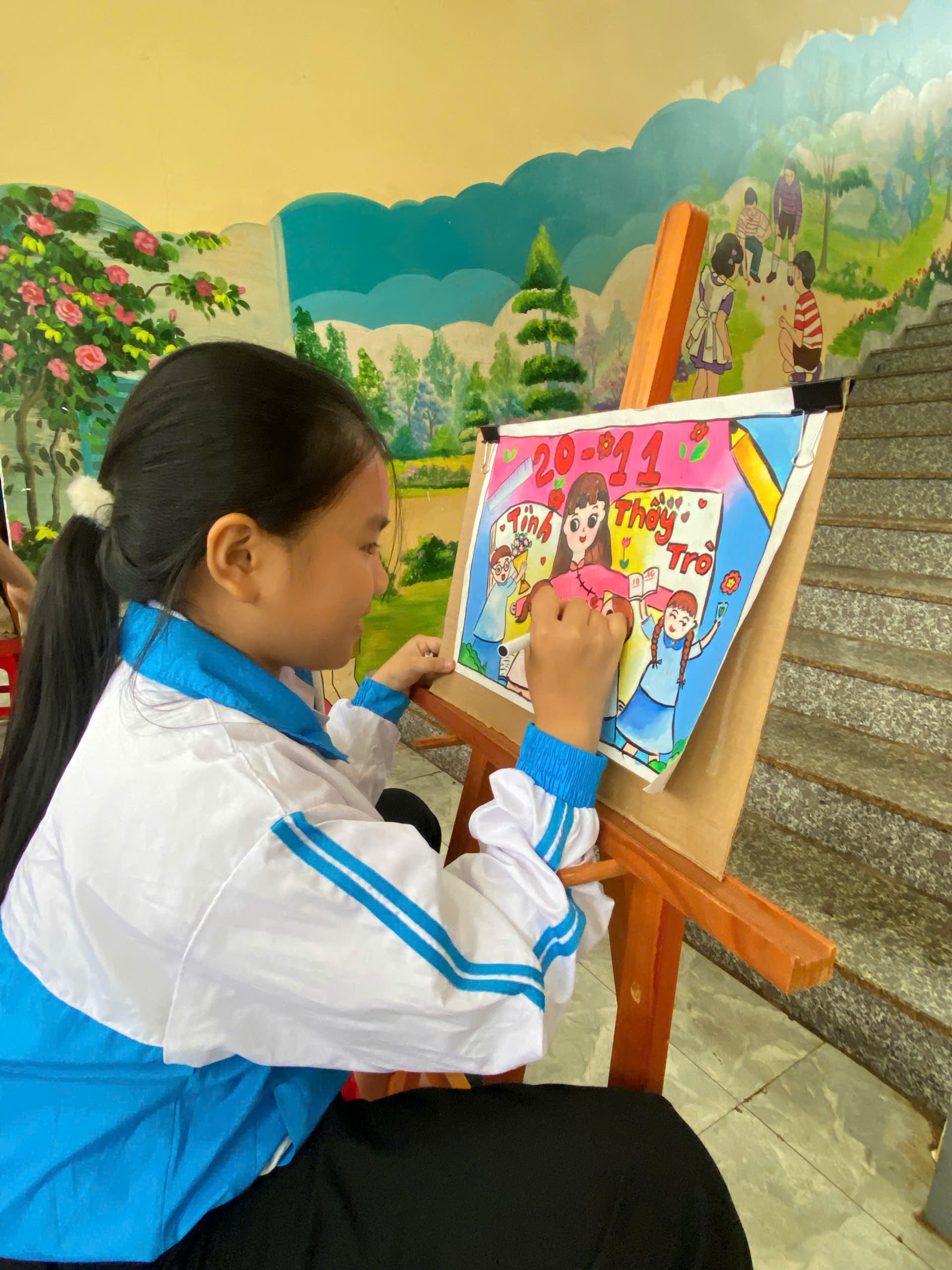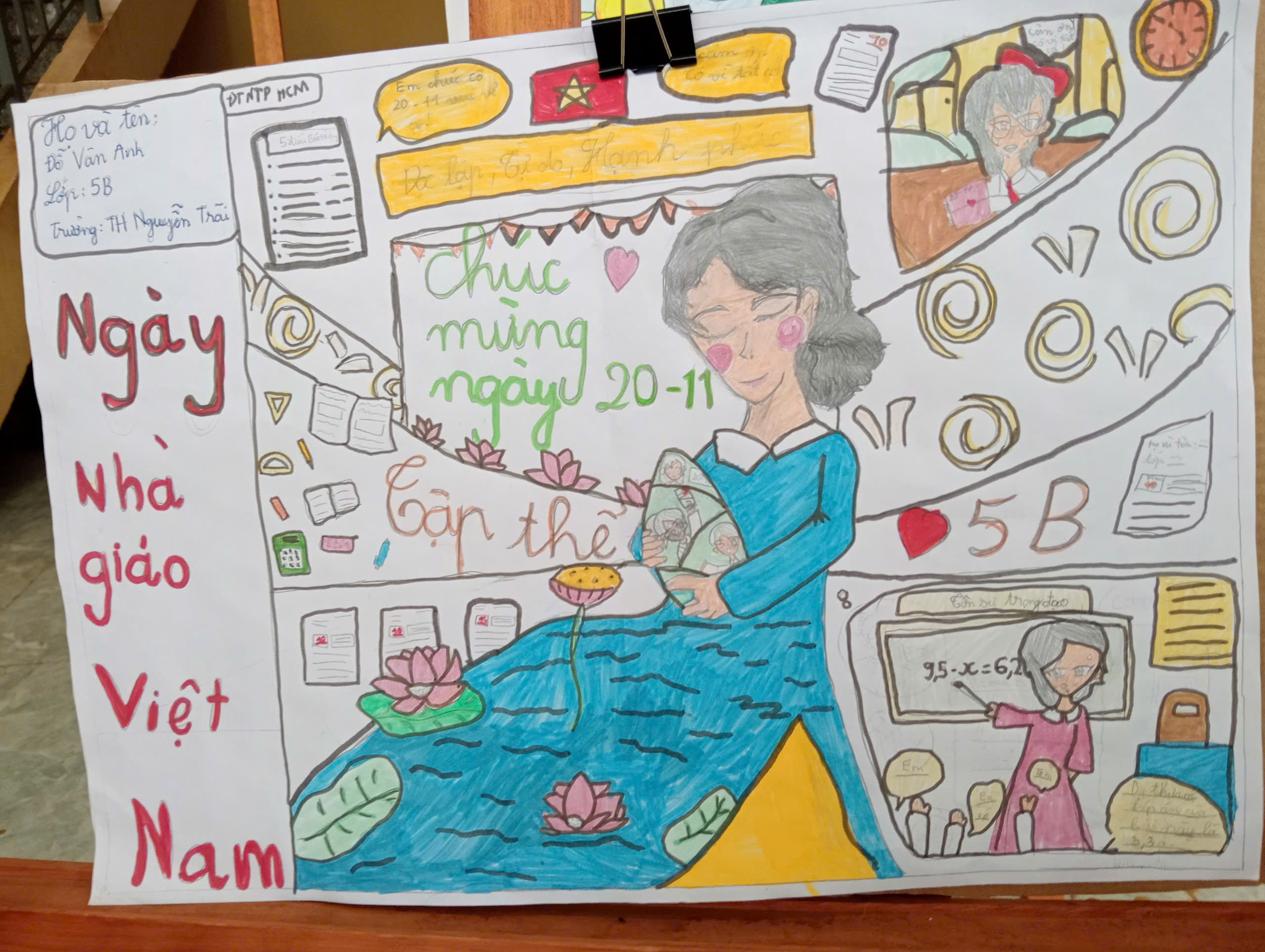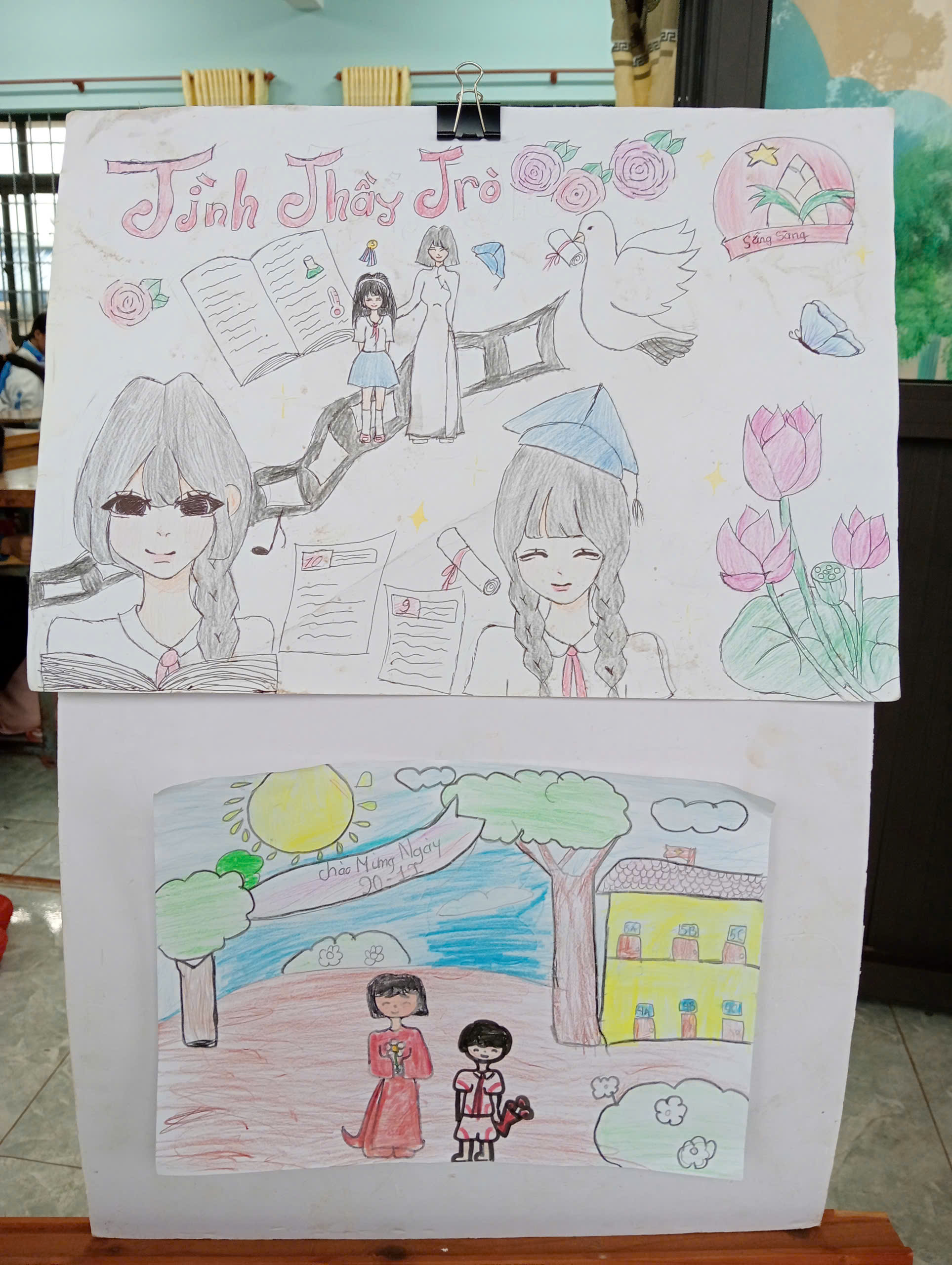 Thi vẽ tranh chủ đề “Chào mừng Ngày Nhà giáo Việt Nam” với nhiều tác phẩm sáng tạo, giàu ý tưởng, phản ánh tình cảm trong trẻo của học trò đối với mái trường và thầy cô.