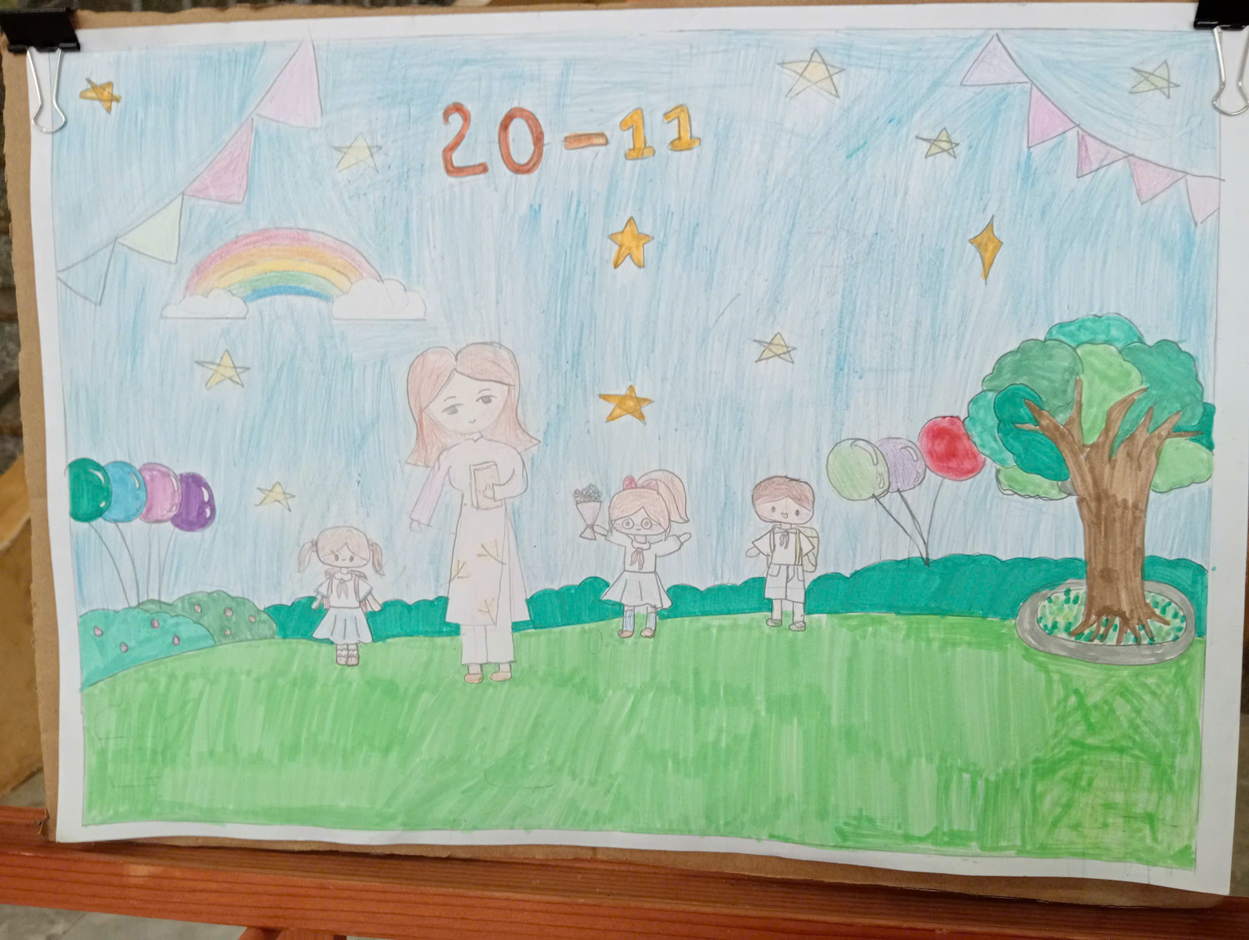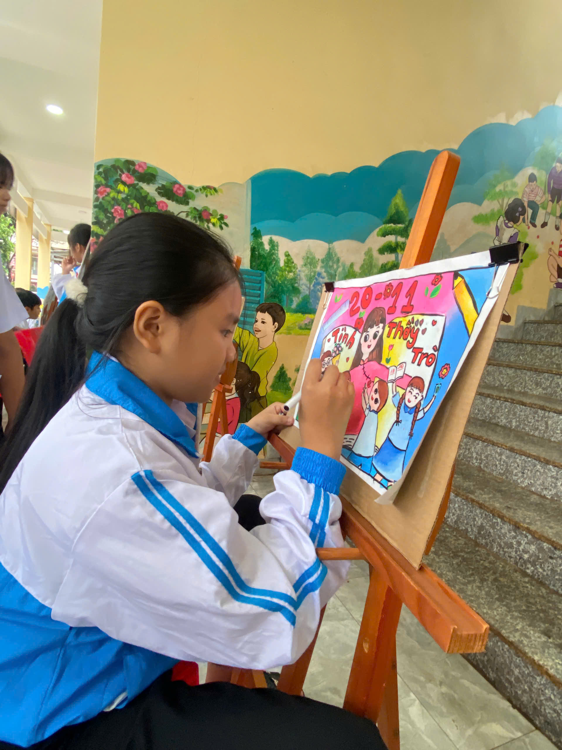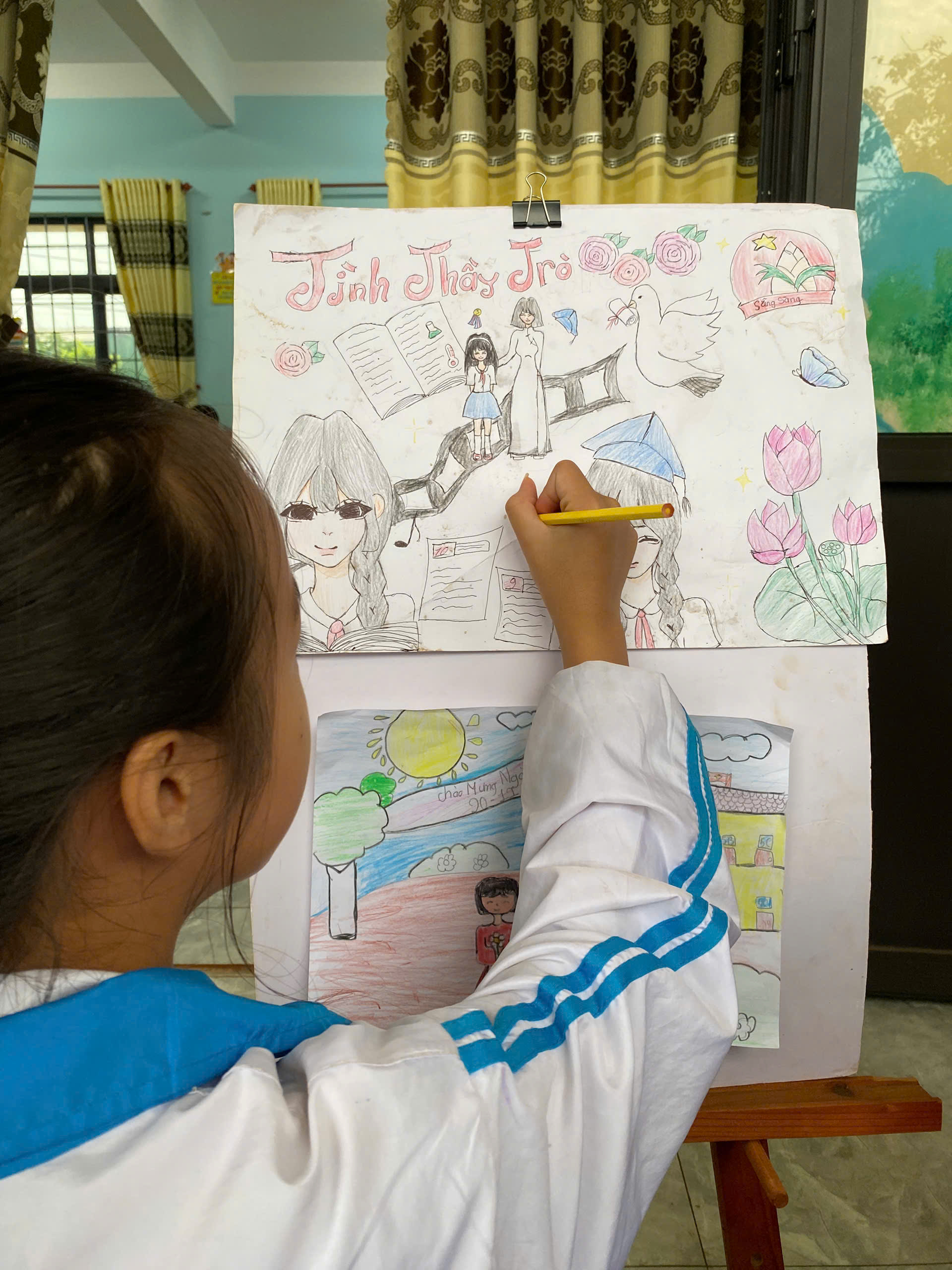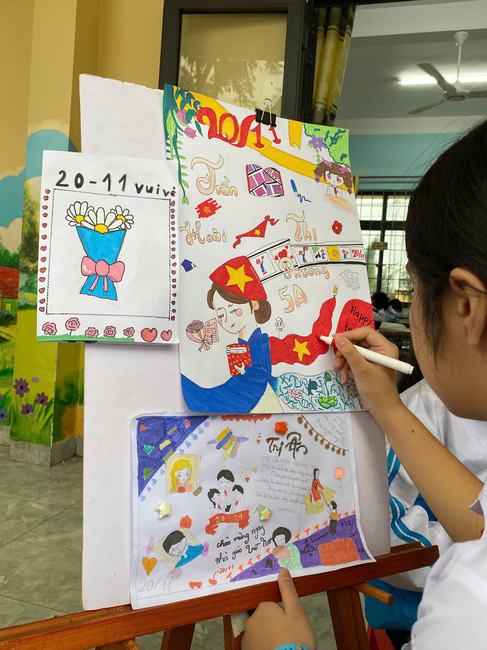 Thi vẽ tranh chủ đề “Chào mừng Ngày Nhà giáo Việt Nam” với nhiều tác phẩm sáng tạo, giàu ý tưởng, phản ánh tình cảm trong trẻo của học trò đối với mái trường và thầy cô.