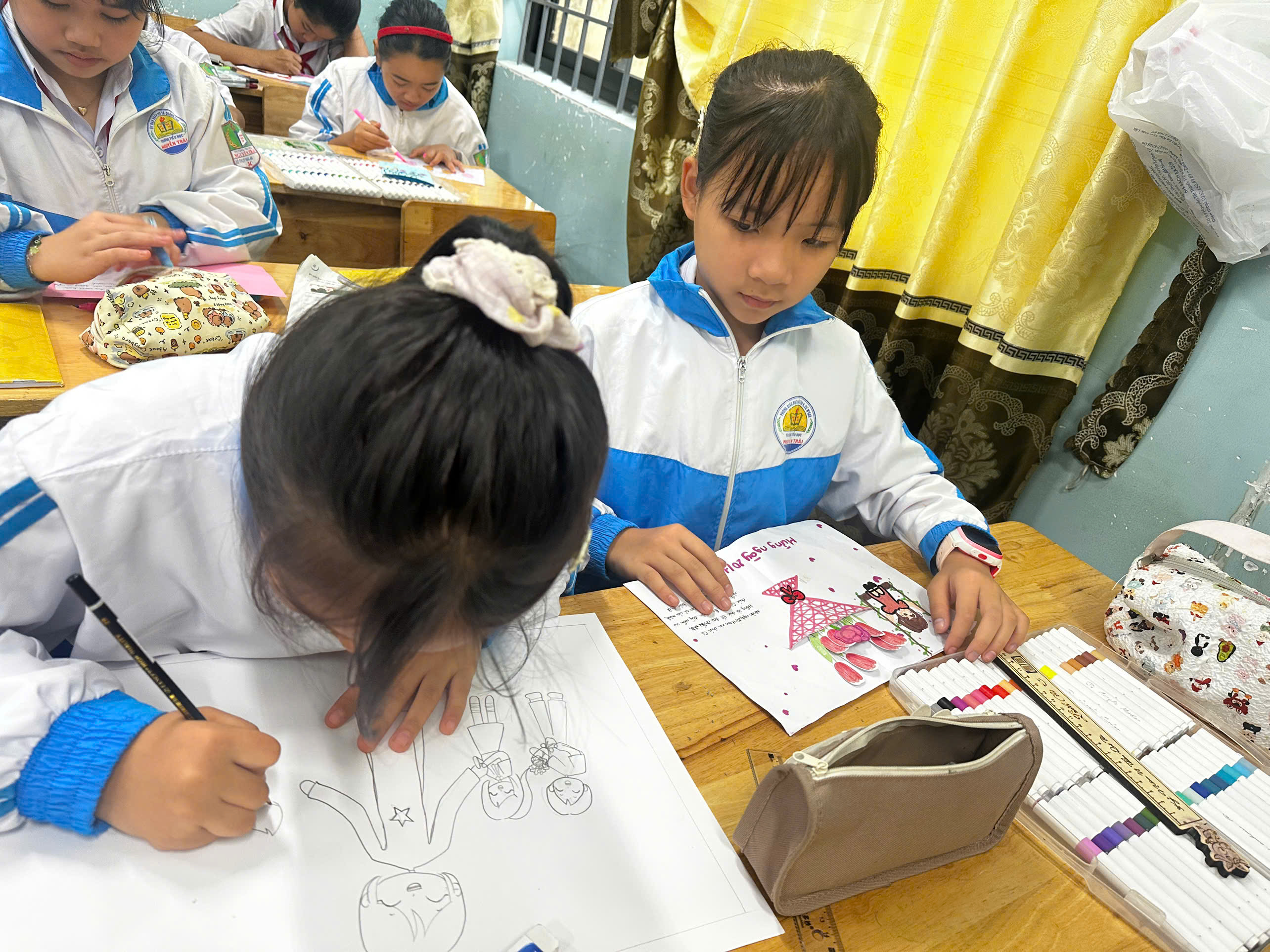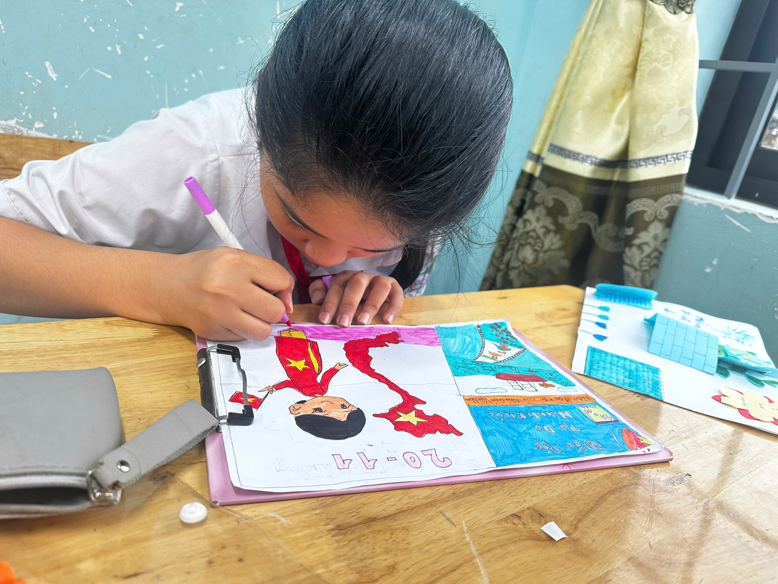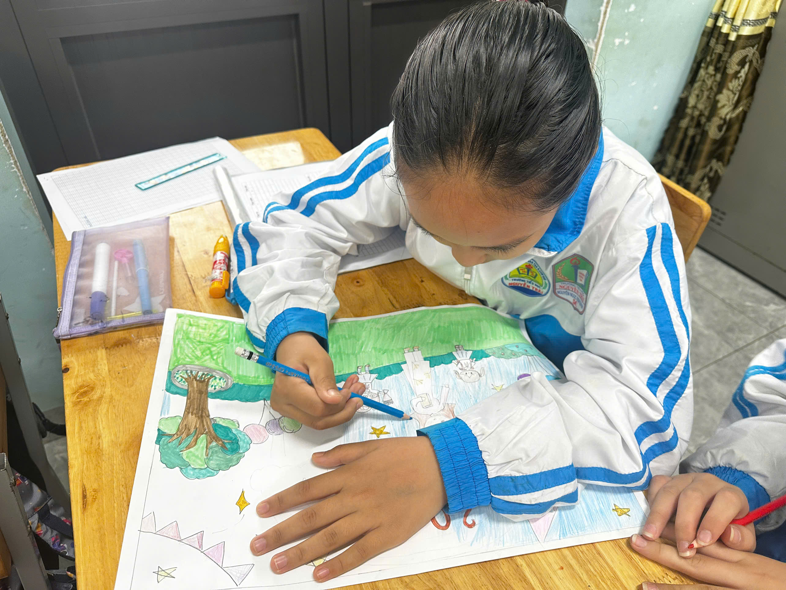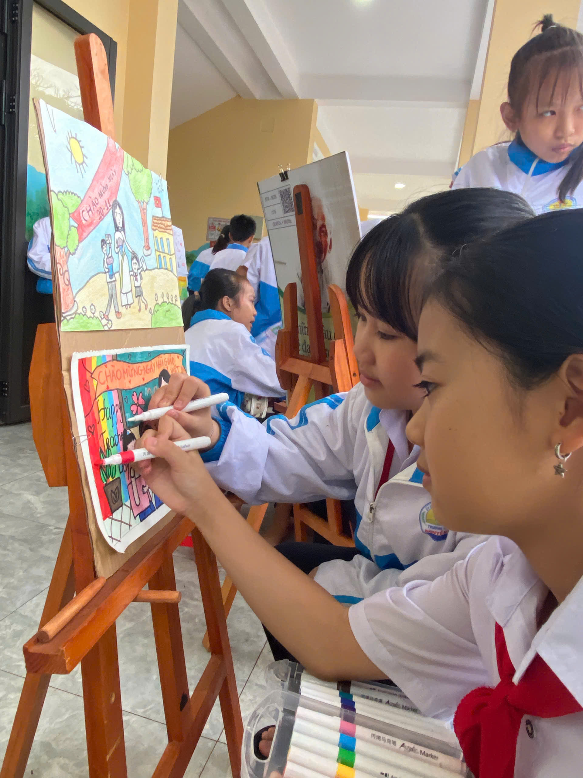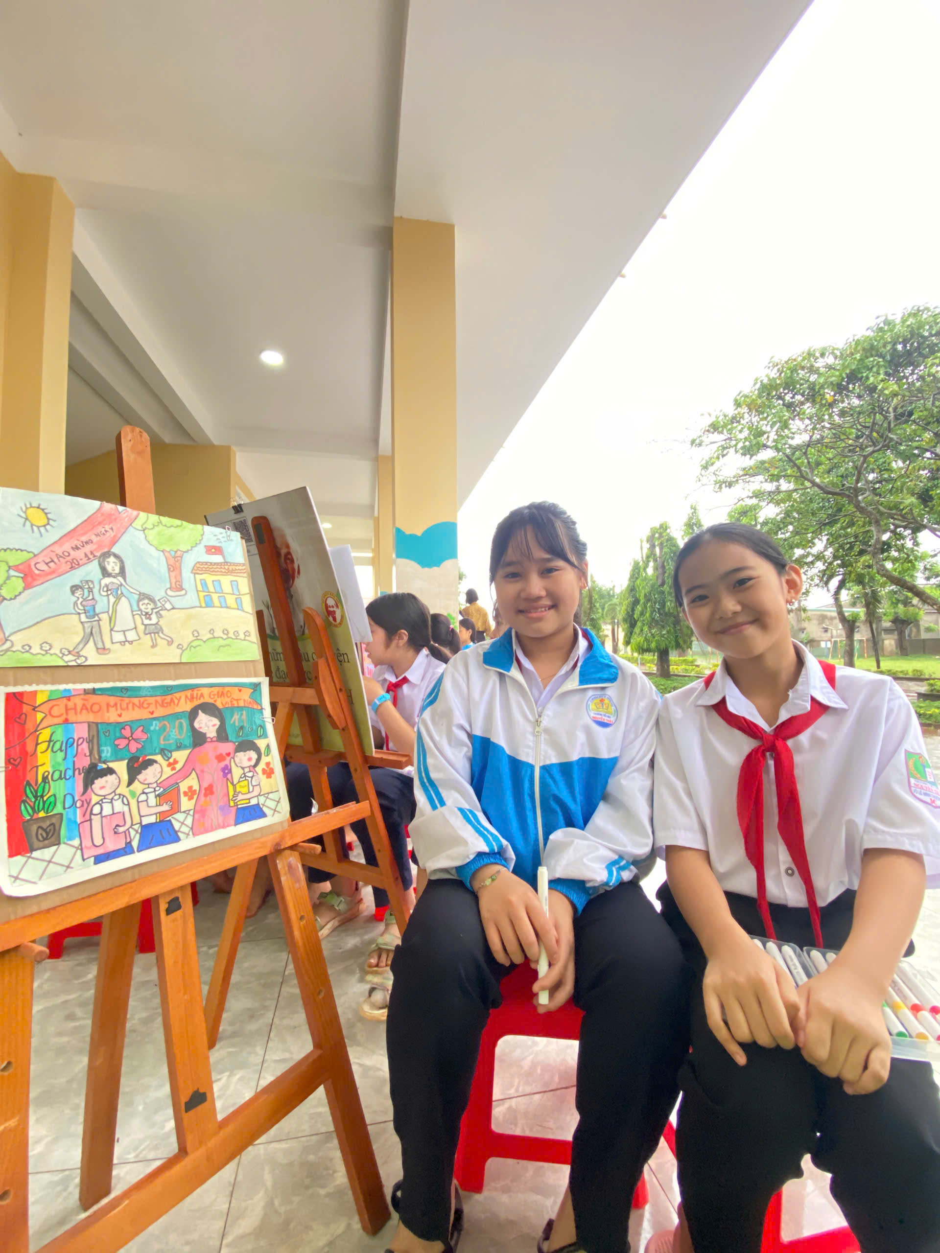 Thi vẽ tranh chủ đề “Chào mừng Ngày Nhà giáo Việt Nam” với nhiều tác phẩm sáng tạo, giàu ý tưởng, phản ánh tình cảm trong trẻo của học trò đối với mái trường và thầy cô.