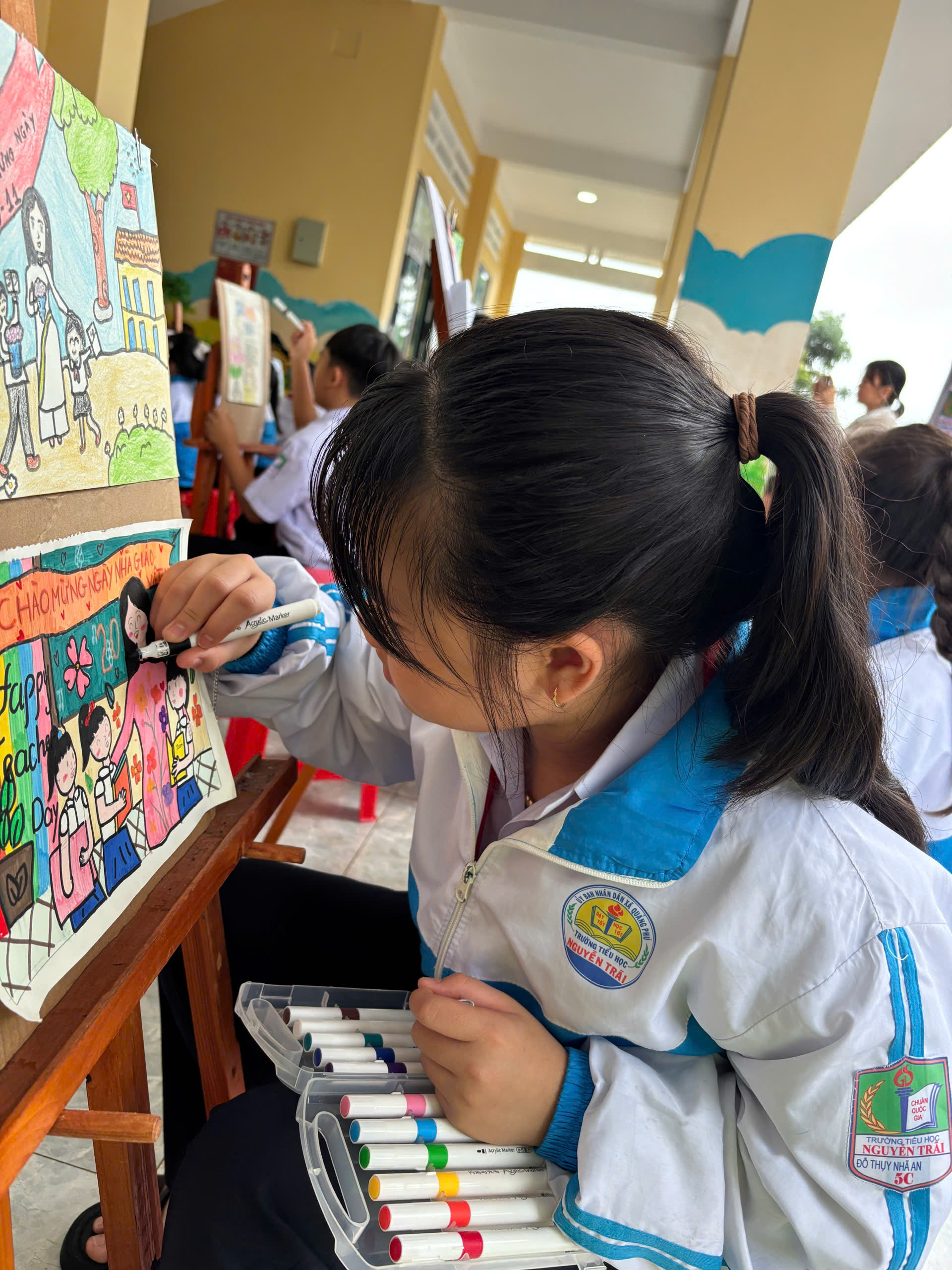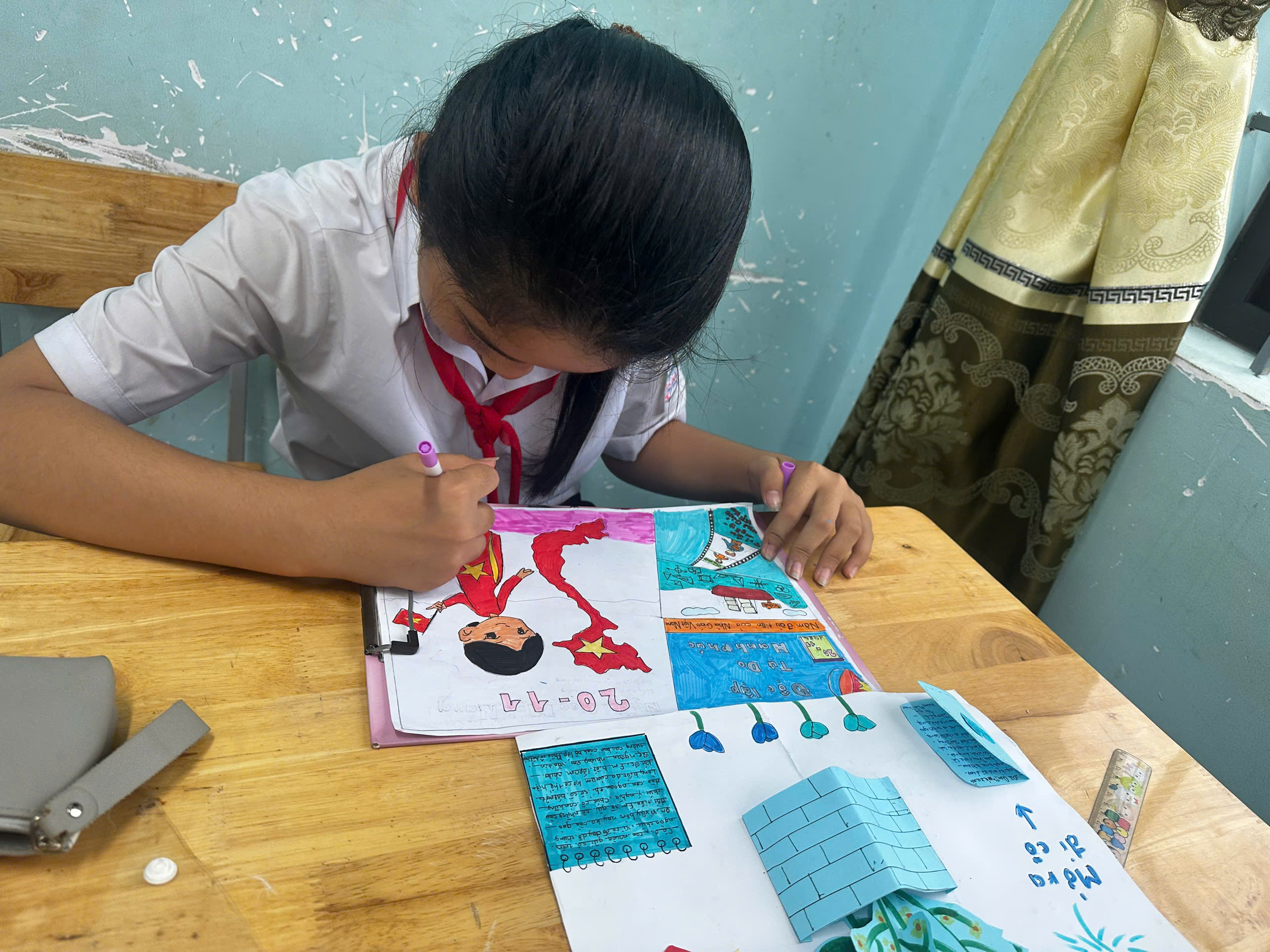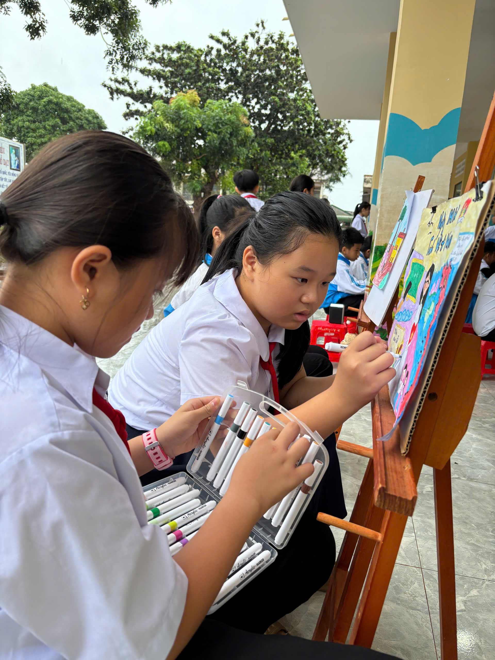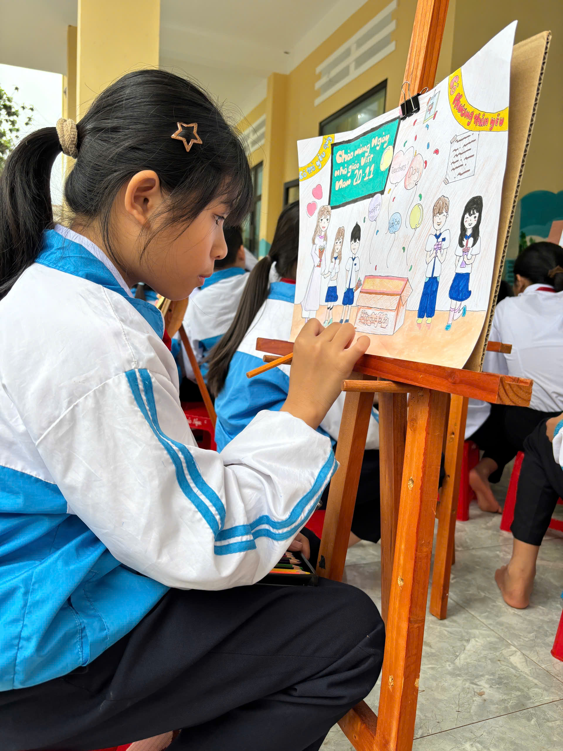 Thi vẽ tranh chủ đề “Chào mừng Ngày Nhà giáo Việt Nam” với nhiều tác phẩm sáng tạo, giàu ý tưởng, phản ánh tình cảm trong trẻo của học trò đối với mái trường và thầy cô.