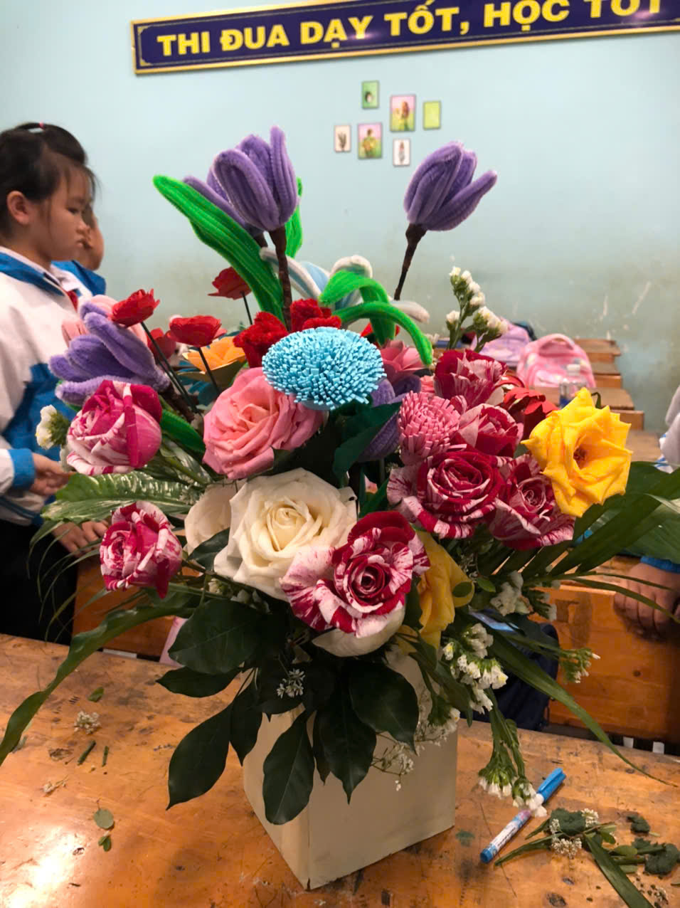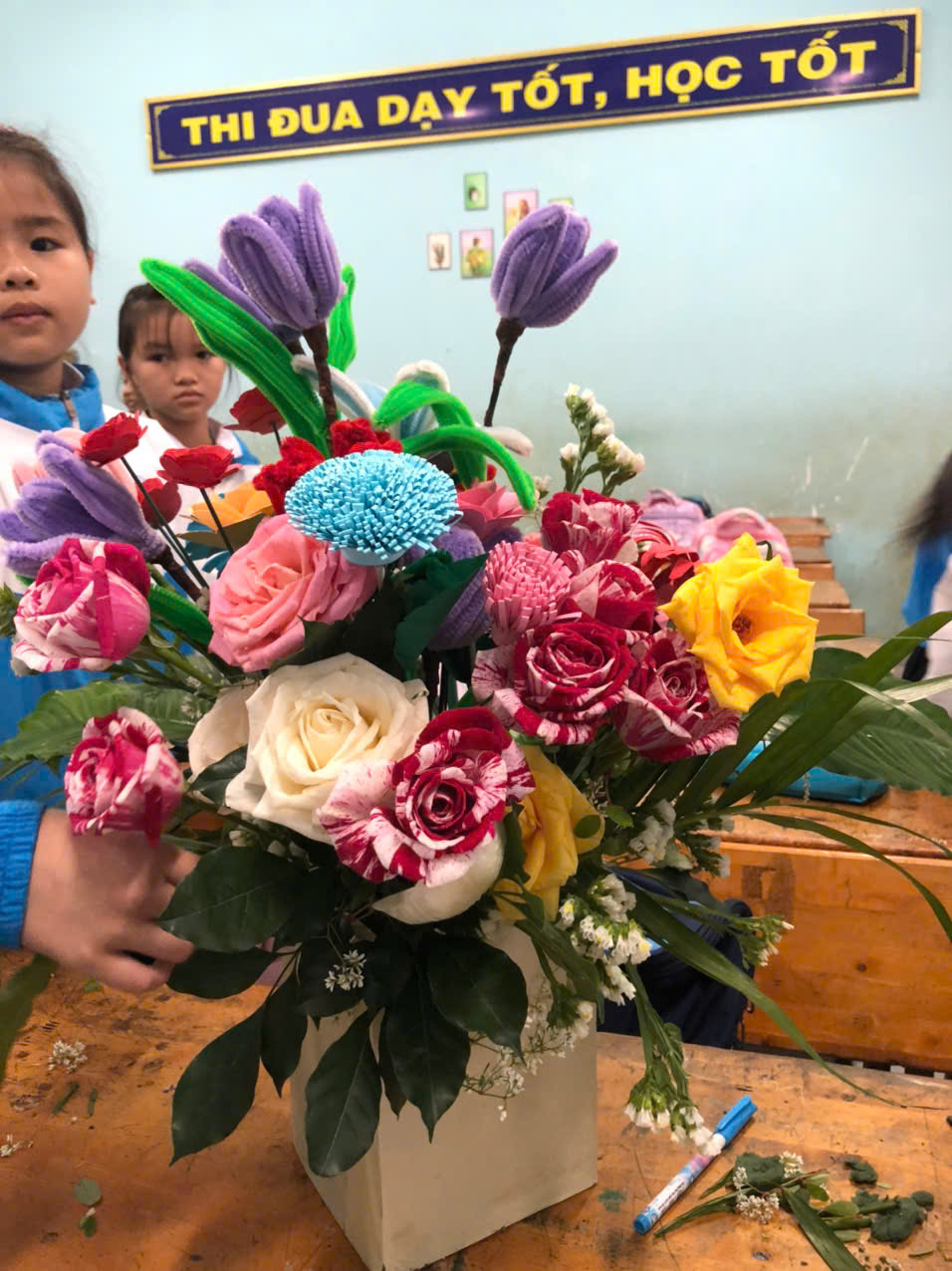 Hoạt động cắm hoa nghệ thuật nhằm bồi dưỡng sự khéo léo, óc thẩm mỹ và tinh thần làm đẹp cho cuộc sống.