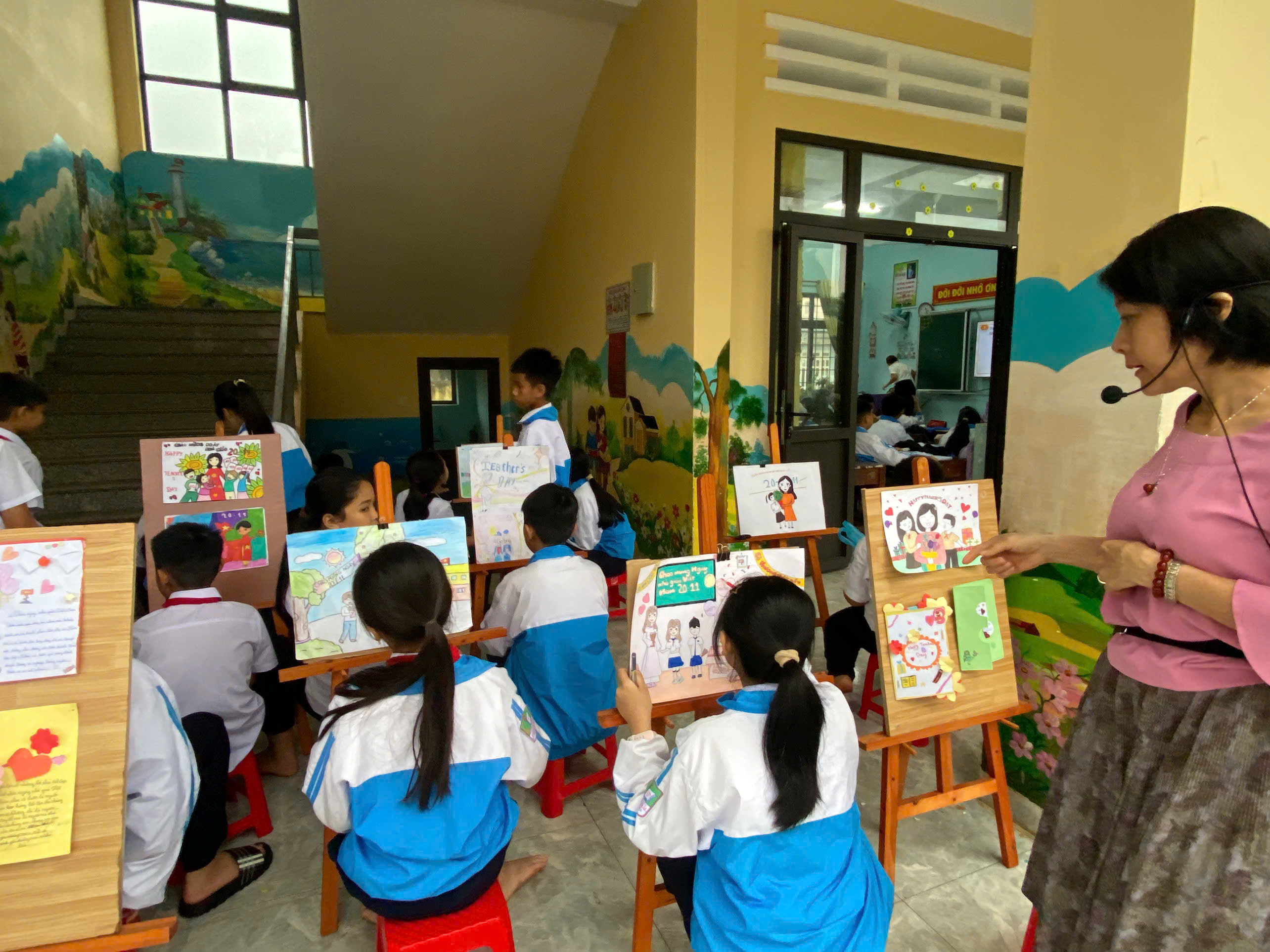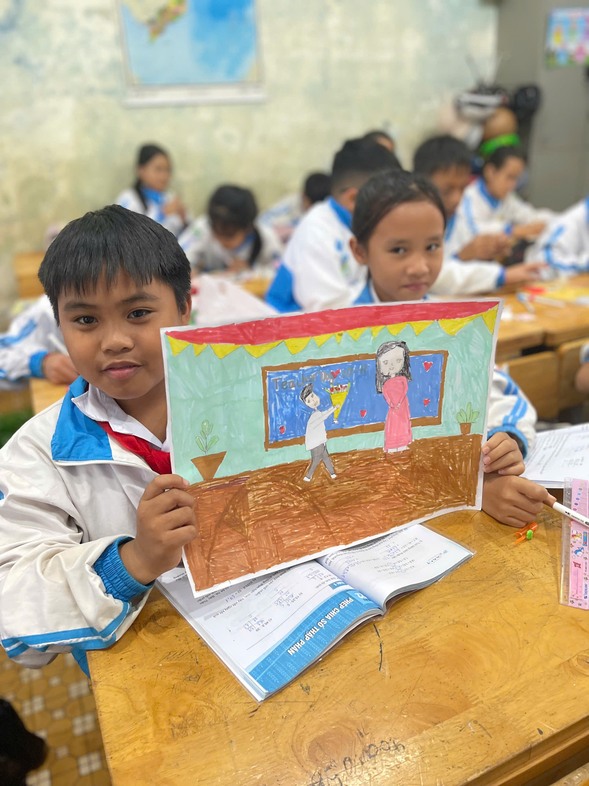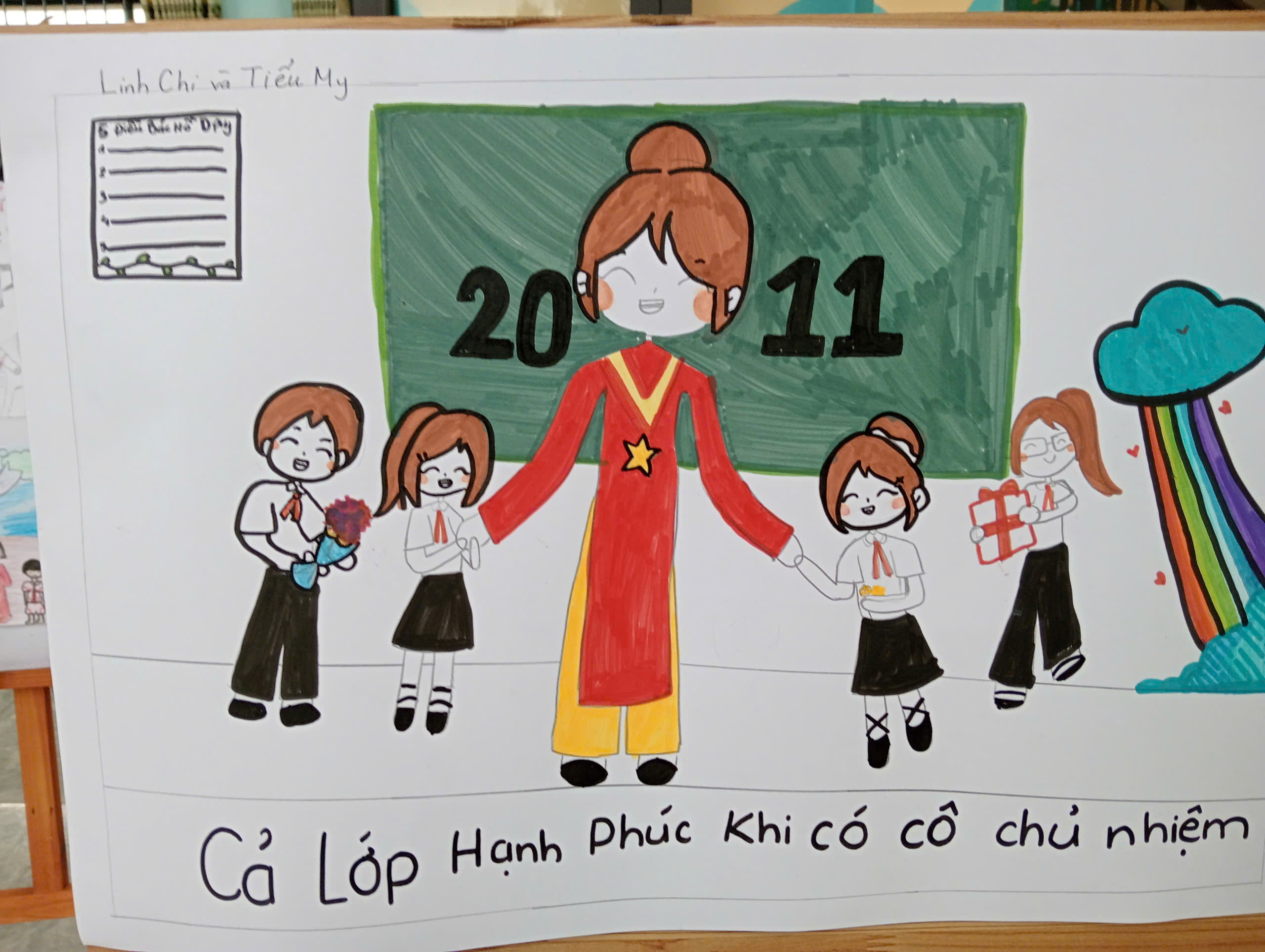 Vẽ tranh và kể chuyện về tấm gương các thầy cô giáo – nơi học sinh thể hiện tình cảm, sự kính trọng dành cho những nhà giáo mẫu mực bằng nét vẽ hồn nhiên và lời kể mộc mạc, chân thành.