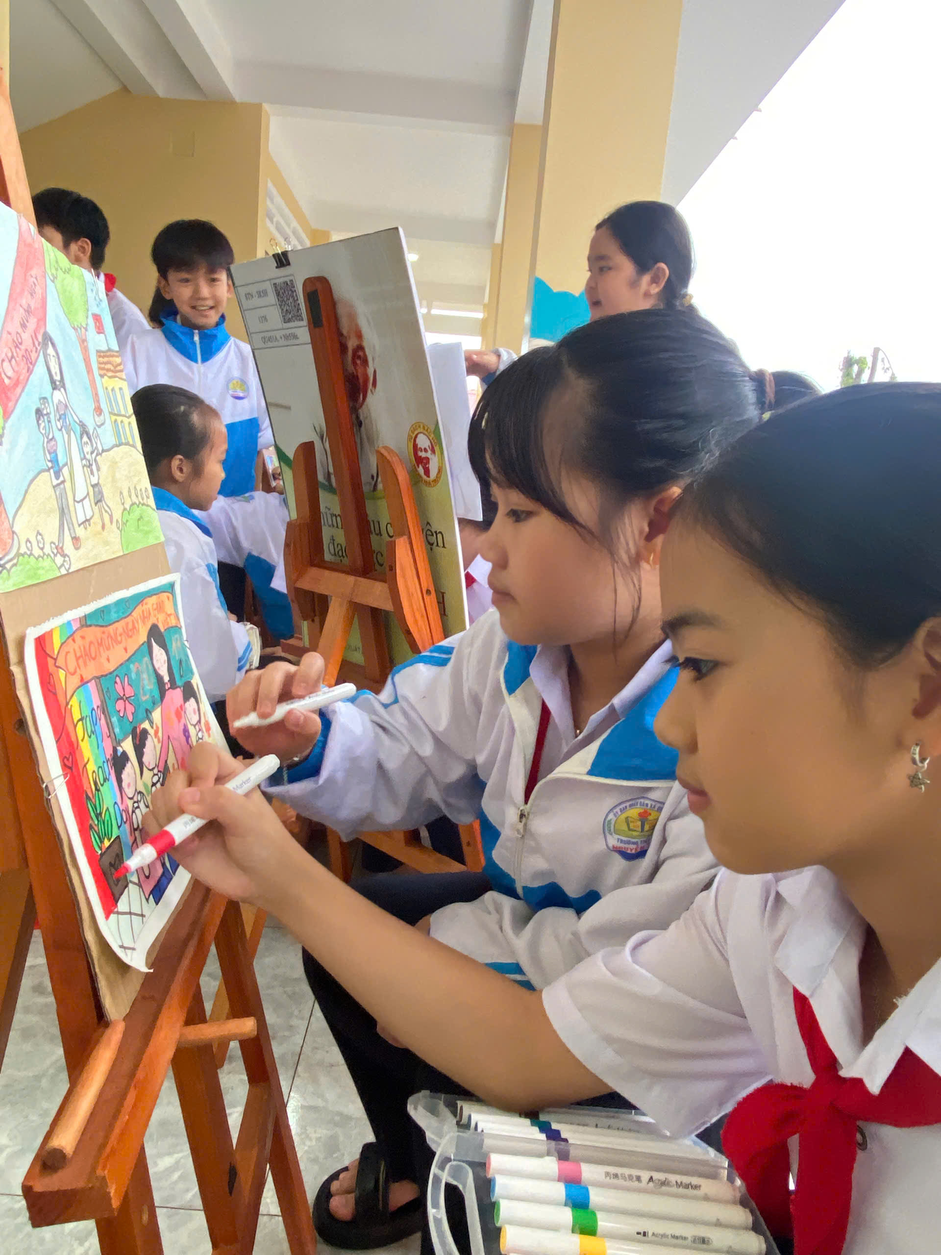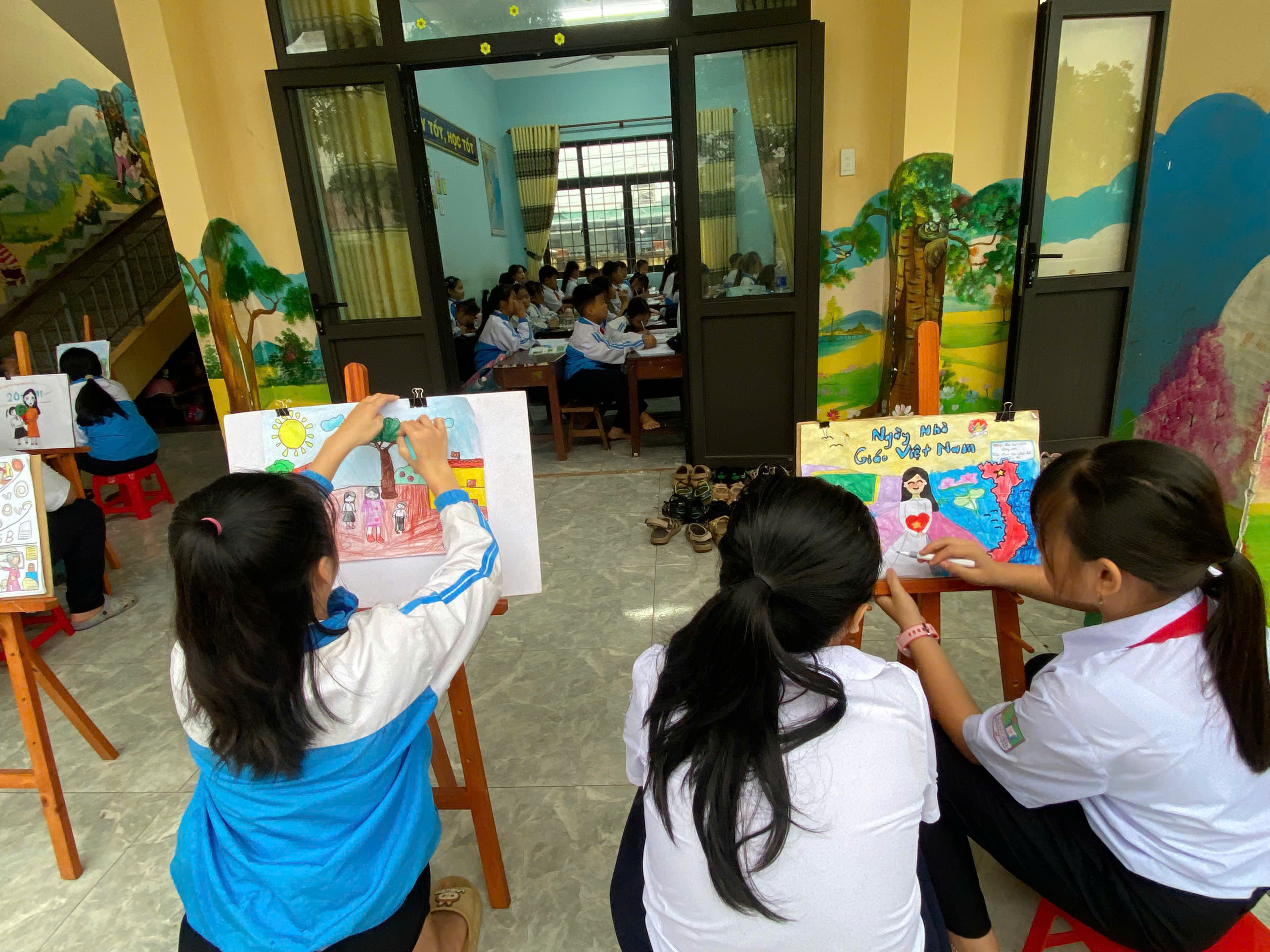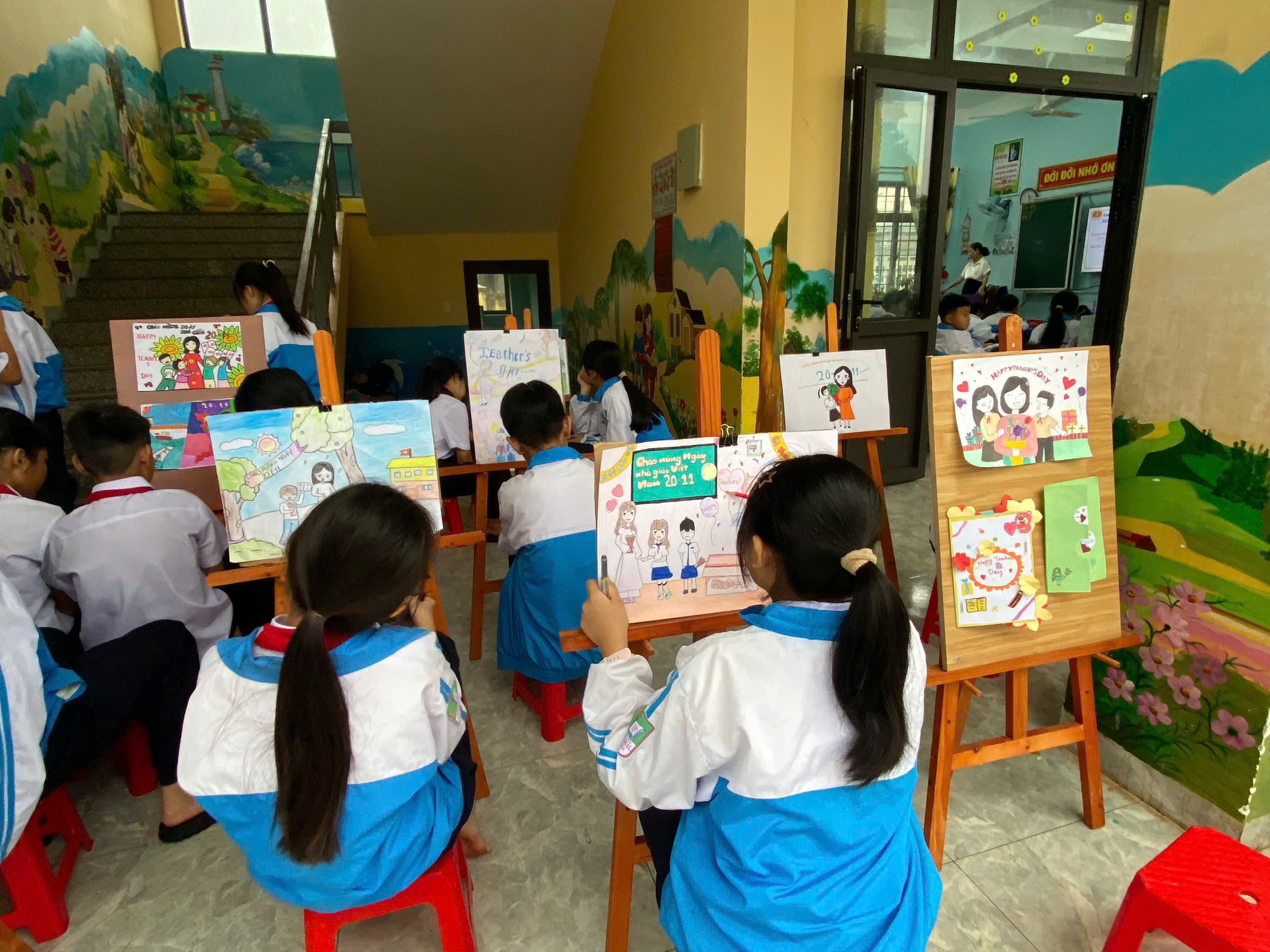 Vẽ tranh và kể chuyện về tấm gương các thầy cô giáo – nơi học sinh thể hiện tình cảm, sự kính trọng dành cho những nhà giáo mẫu mực bằng nét vẽ hồn nhiên và lời kể mộc mạc, chân thành.