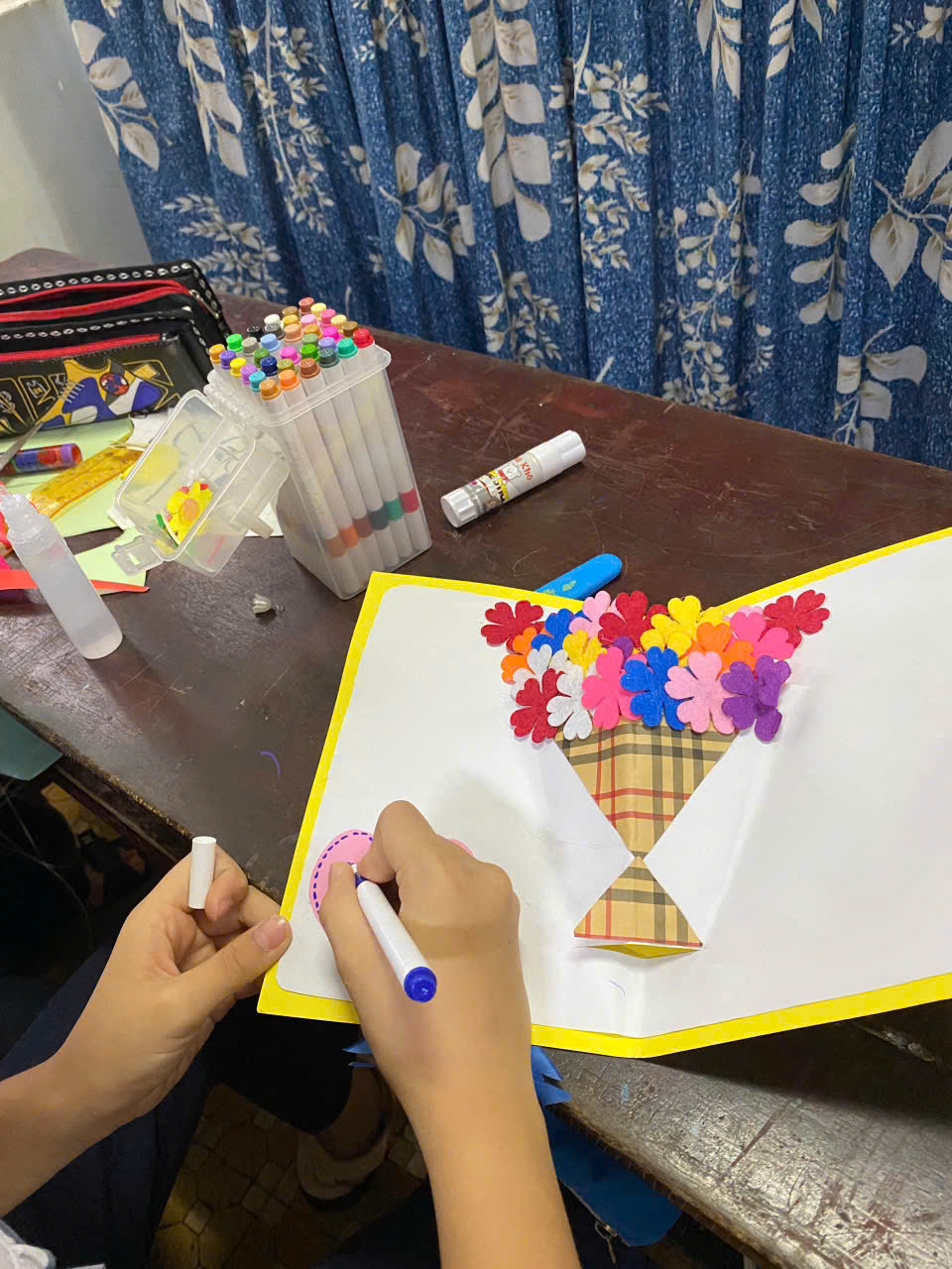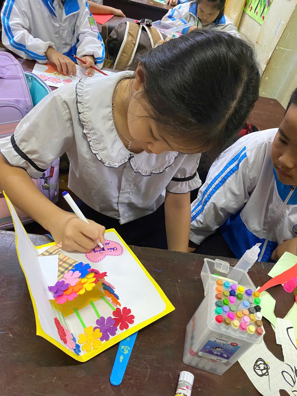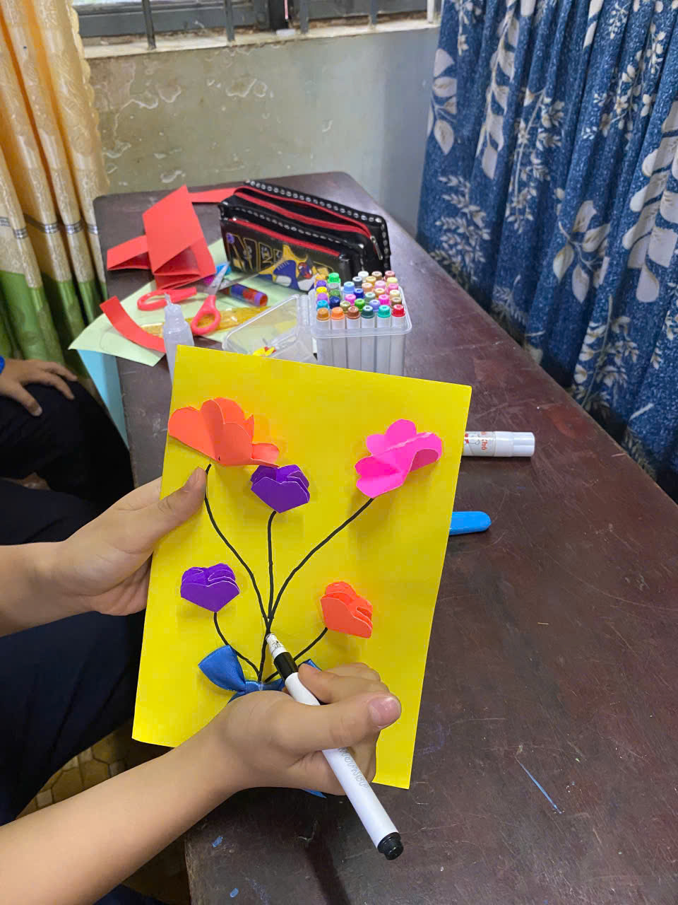 Làm thiệp chúc mừng, làm hoa và các sản phẩm handmade từ vật liệu đơn giản – giúp học sinh rèn luyện kỹ năng thủ công, khả năng thẩm mỹ và biết trân trọng giá trị của sự tự tay tạo ra món quà ý nghĩa.
