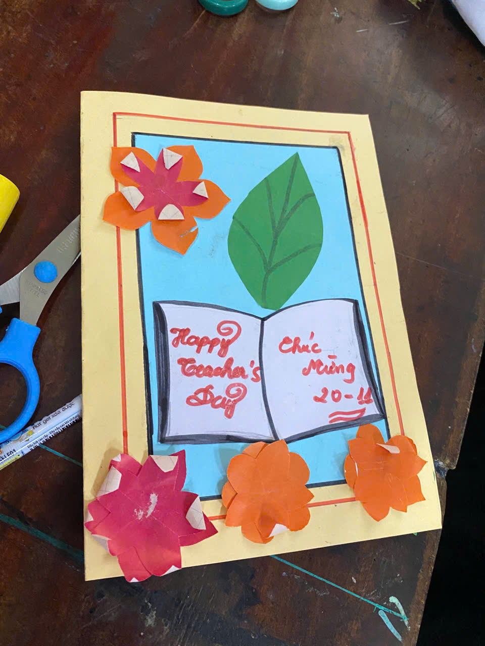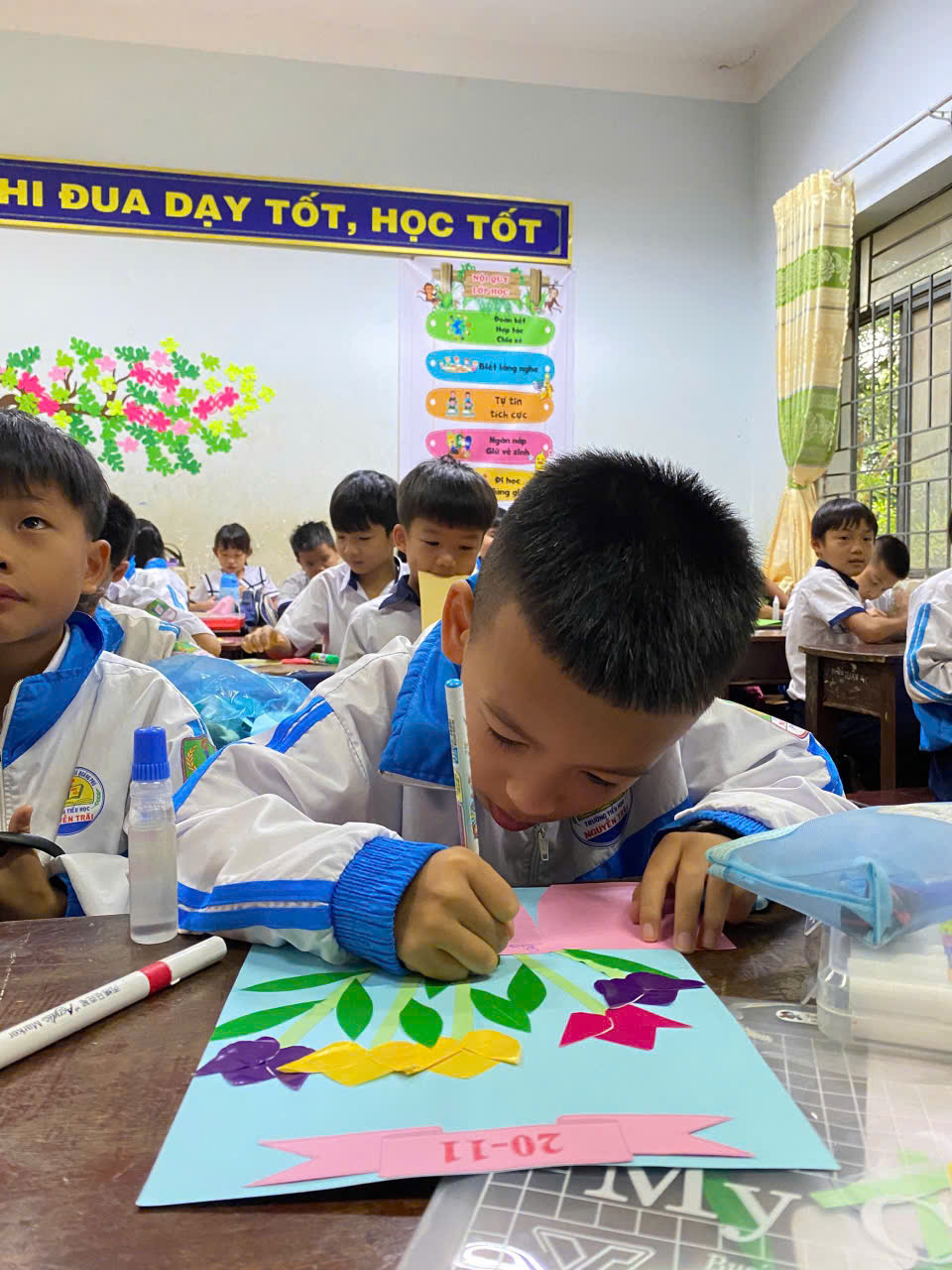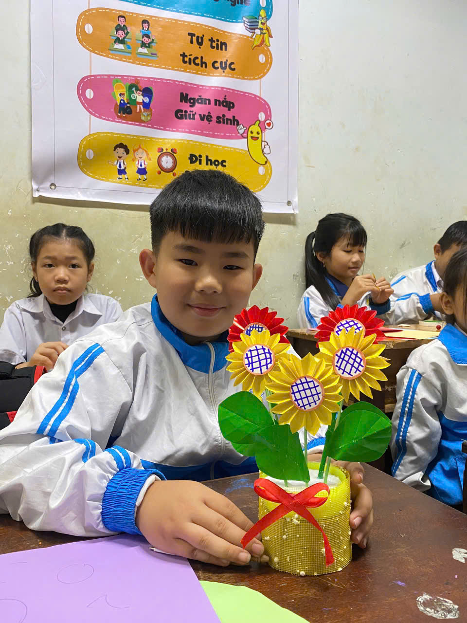 Làm thiệp chúc mừng, làm hoa và các sản phẩm handmade từ vật liệu đơn giản – giúp học sinh rèn luyện kỹ năng thủ công, khả năng thẩm mỹ và biết trân trọng giá trị của sự tự tay tạo ra món quà ý nghĩa.