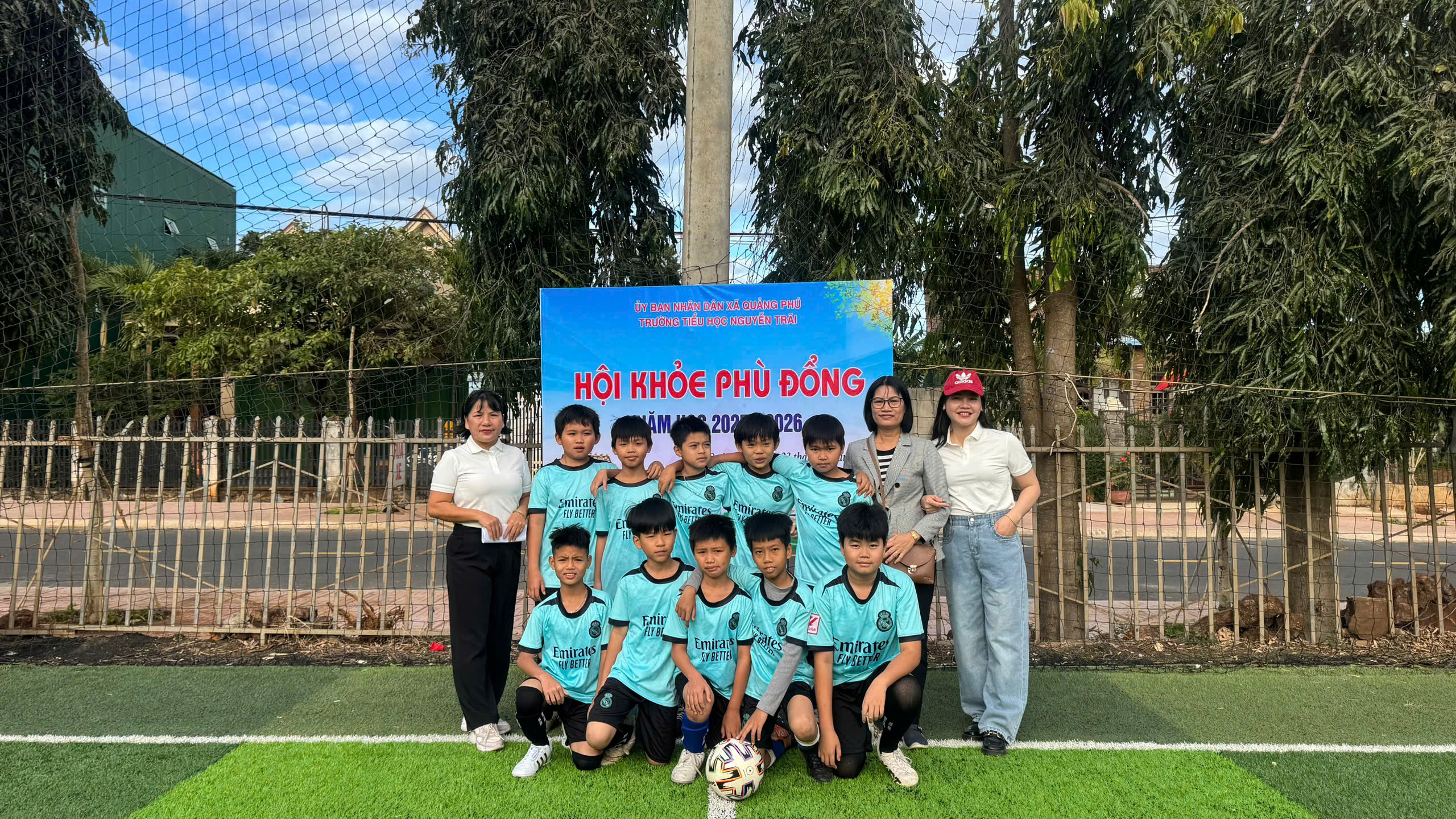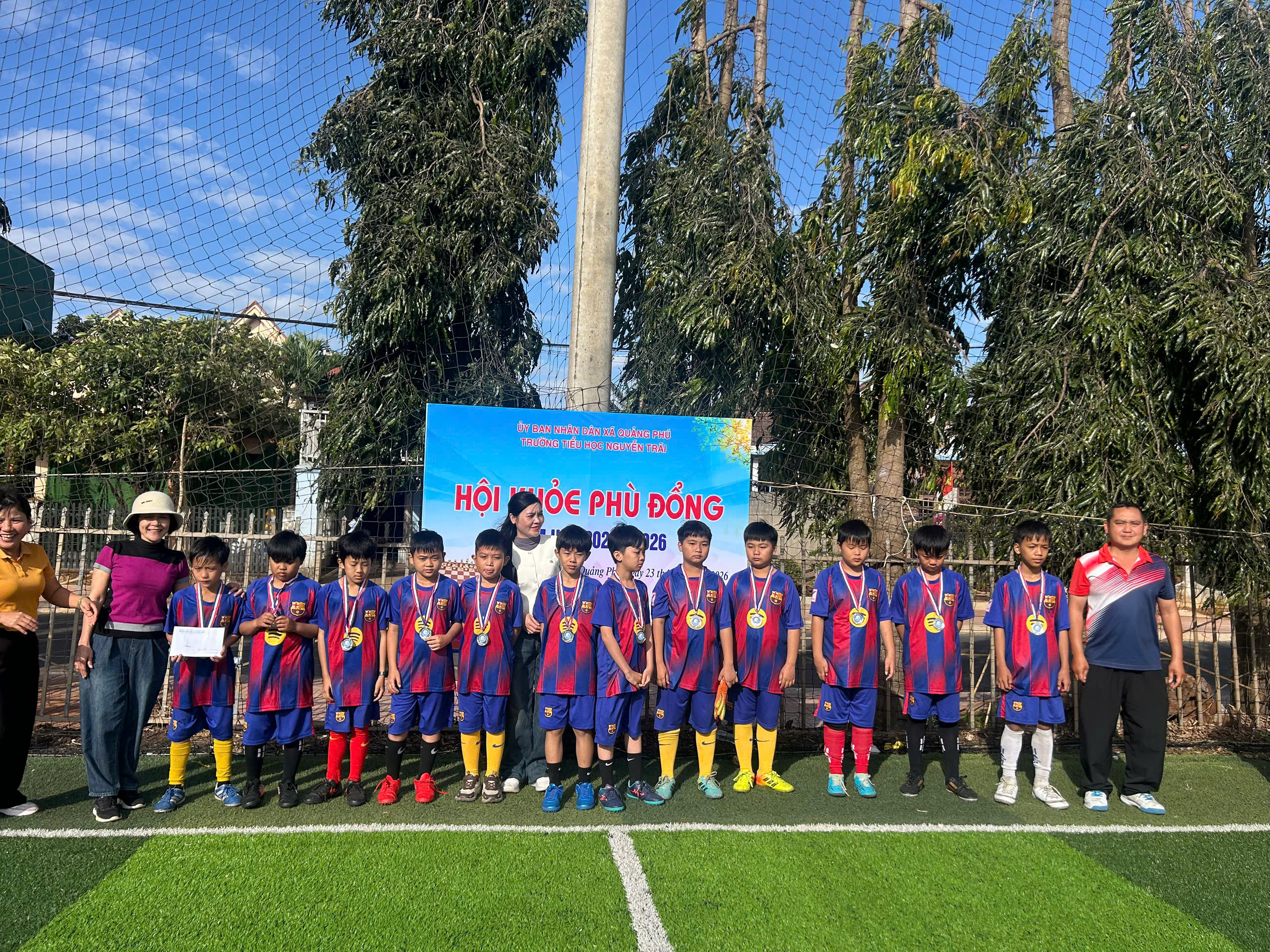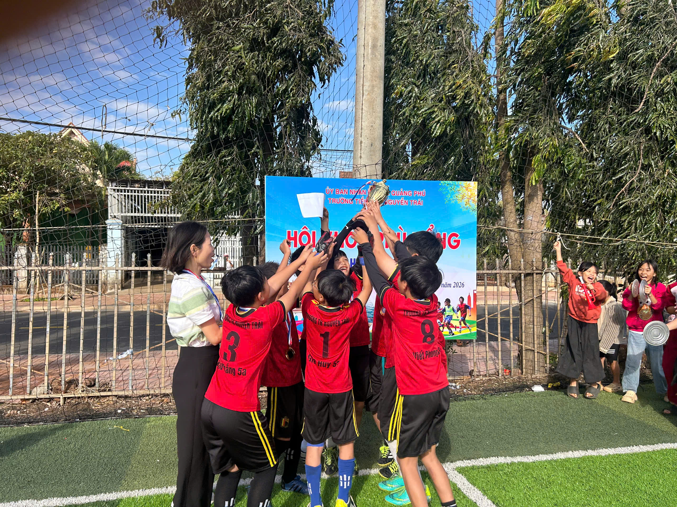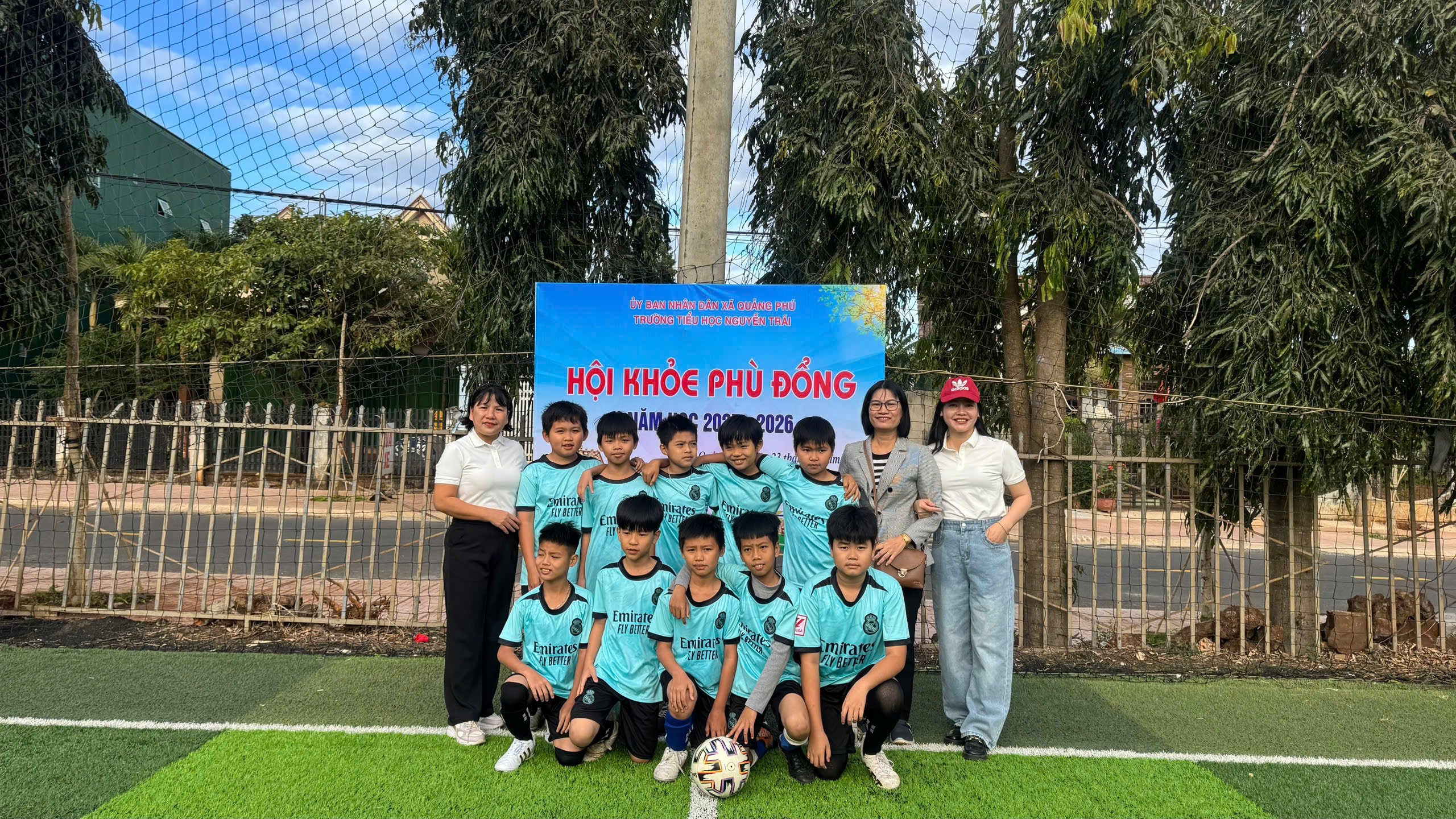 Hội khỏe Phù Đổng Trường Tiểu học Nguyễn Trãi được tổ chức trong hai ngày 23 và 24/1/2026 đã diễn ra sôi nổi và thành công tốt đẹp. Trong khuôn khổ hội thi, nội dung bóng đá nam khối 4, 5 đã thu hút sự tham gia tích cực của 7 lớp với tinh thần thi đấu nhiệt huyết. Các đội bóng đã cống hiến nhiều trận đấu hấp dẫn, thể hiện kỹ thuật, sự khéo léo và tinh thần đoàn kết cao. Kết quả chung cuộc, lớp 4D đã xuất sắc giành cúp vàng của giải đấu. Đặc biệt, em Đậu Đình Thắng đã ghi được 17 bàn thắng ấn tượng và trở thành vua phá lưới của giải. Hội khỏe Phù Đổng không chỉ là sân chơi thể thao bổ ích mà còn góp phần rèn luyện sức khỏe, tinh thần đồng đội và tạo không khí hào hứng, vui tươi cho các em học sinh trong toàn trường