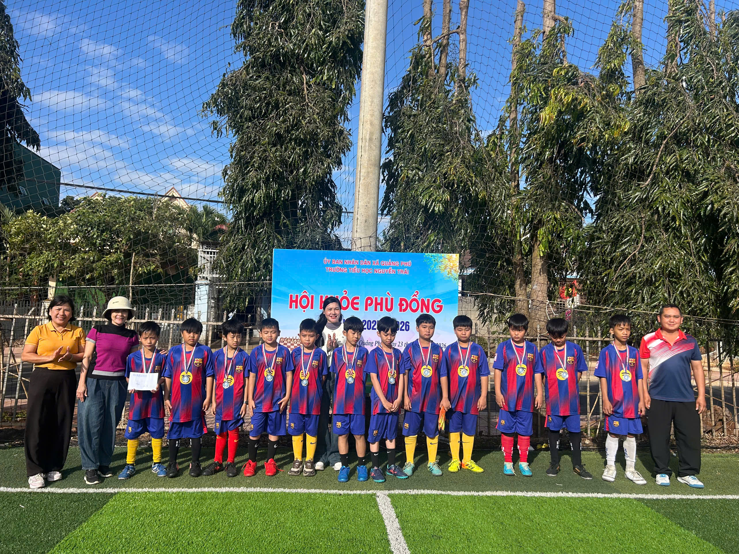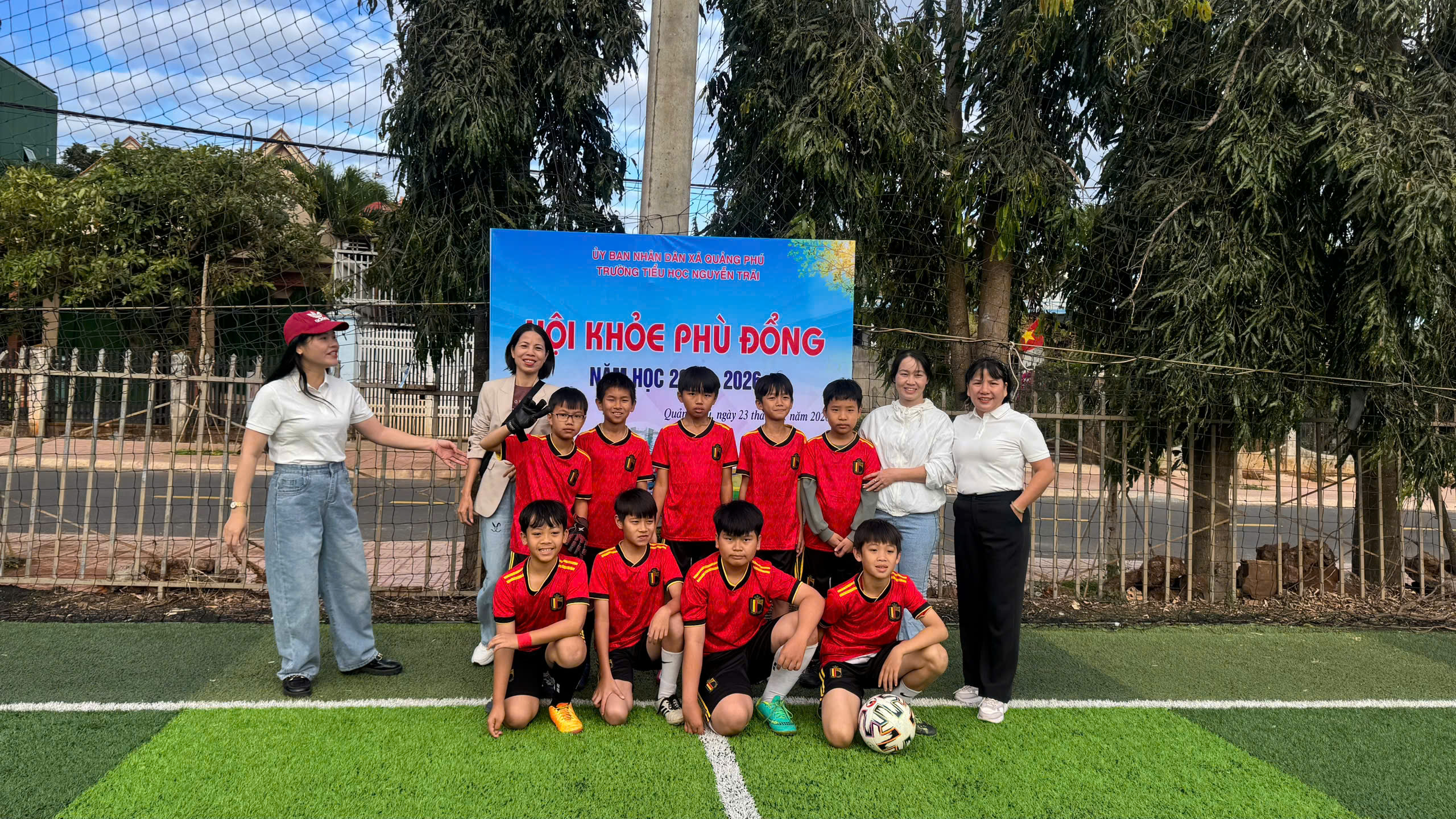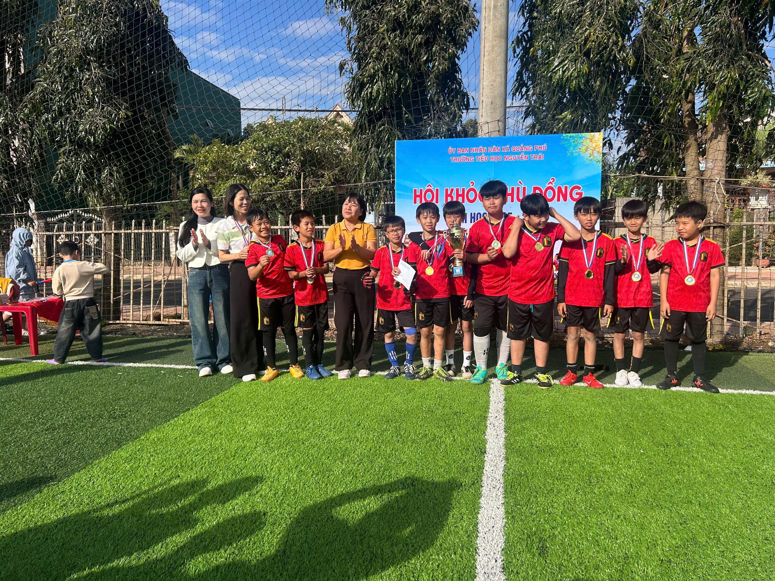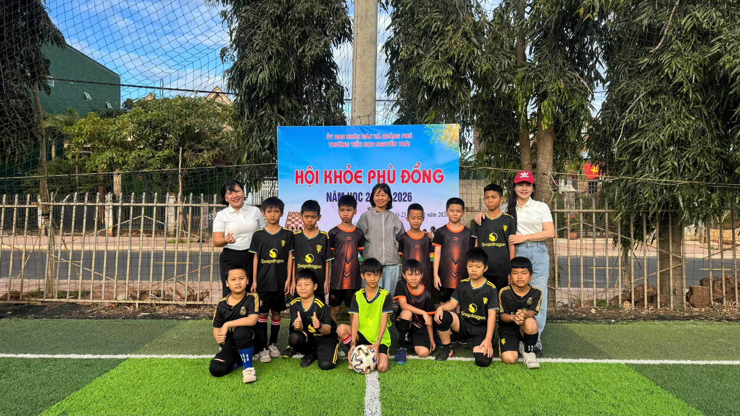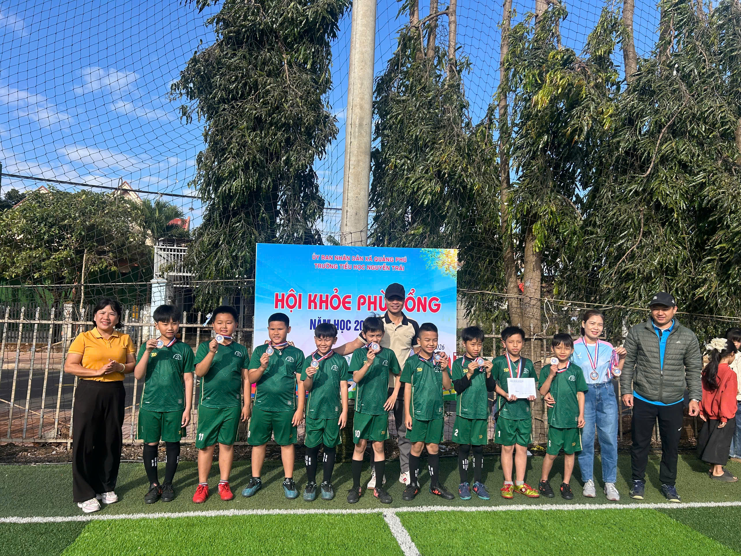 Hội khỏe Phù Đổng Trường Tiểu học Nguyễn Trãi được tổ chức trong hai ngày 23 và 24/1/2026 đã diễn ra sôi nổi và thành công tốt đẹp. Trong khuôn khổ hội thi, nội dung bóng đá nam khối 4, 5 đã thu hút sự tham gia tích cực của 7 lớp với tinh thần thi đấu nhiệt huyết. Các đội bóng đã cống hiến nhiều trận đấu hấp dẫn, thể hiện kỹ thuật, sự khéo léo và tinh thần đoàn kết cao. Kết quả chung cuộc, lớp 4D đã xuất sắc giành cúp vàng của giải đấu. Đặc biệt, em Đậu Đình Thắng đã ghi được 17 bàn thắng ấn tượng và trở thành vua phá lưới của giải. Hội khỏe Phù Đổng không chỉ là sân chơi thể thao bổ ích mà còn góp phần rèn luyện sức khỏe, tinh thần đồng đội và tạo không khí hào hứng, vui tươi cho các em học sinh trong toàn trường