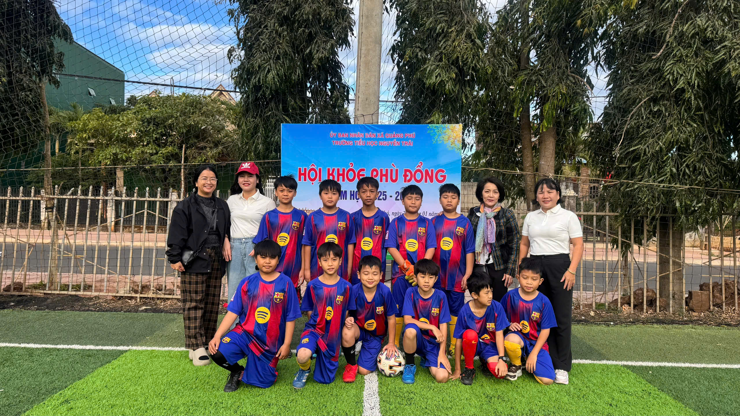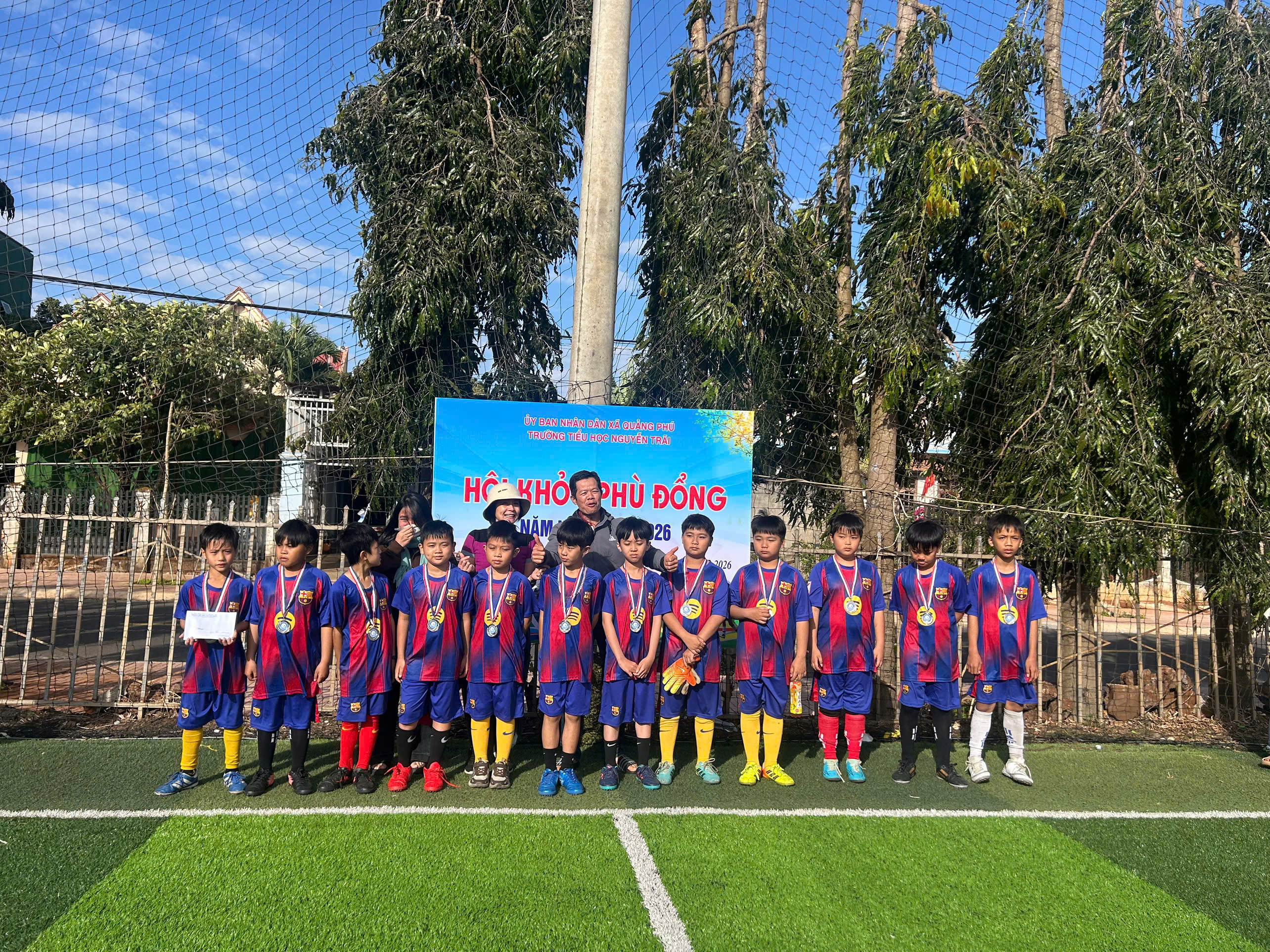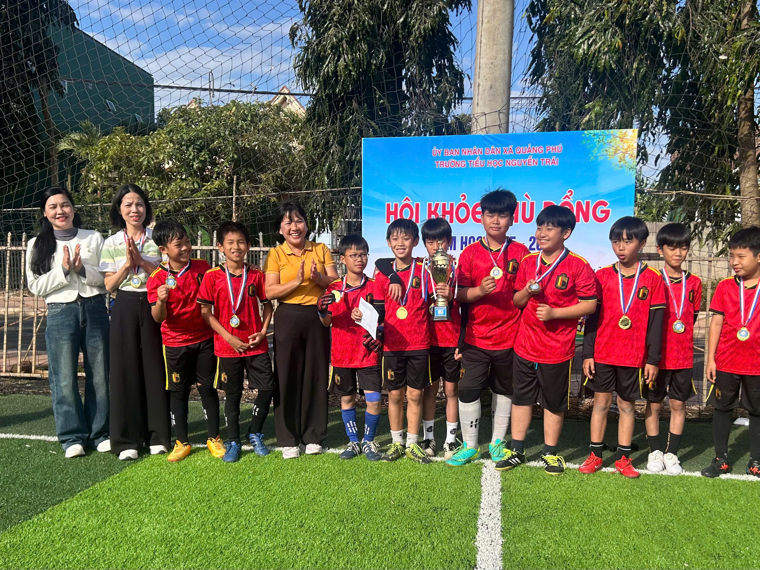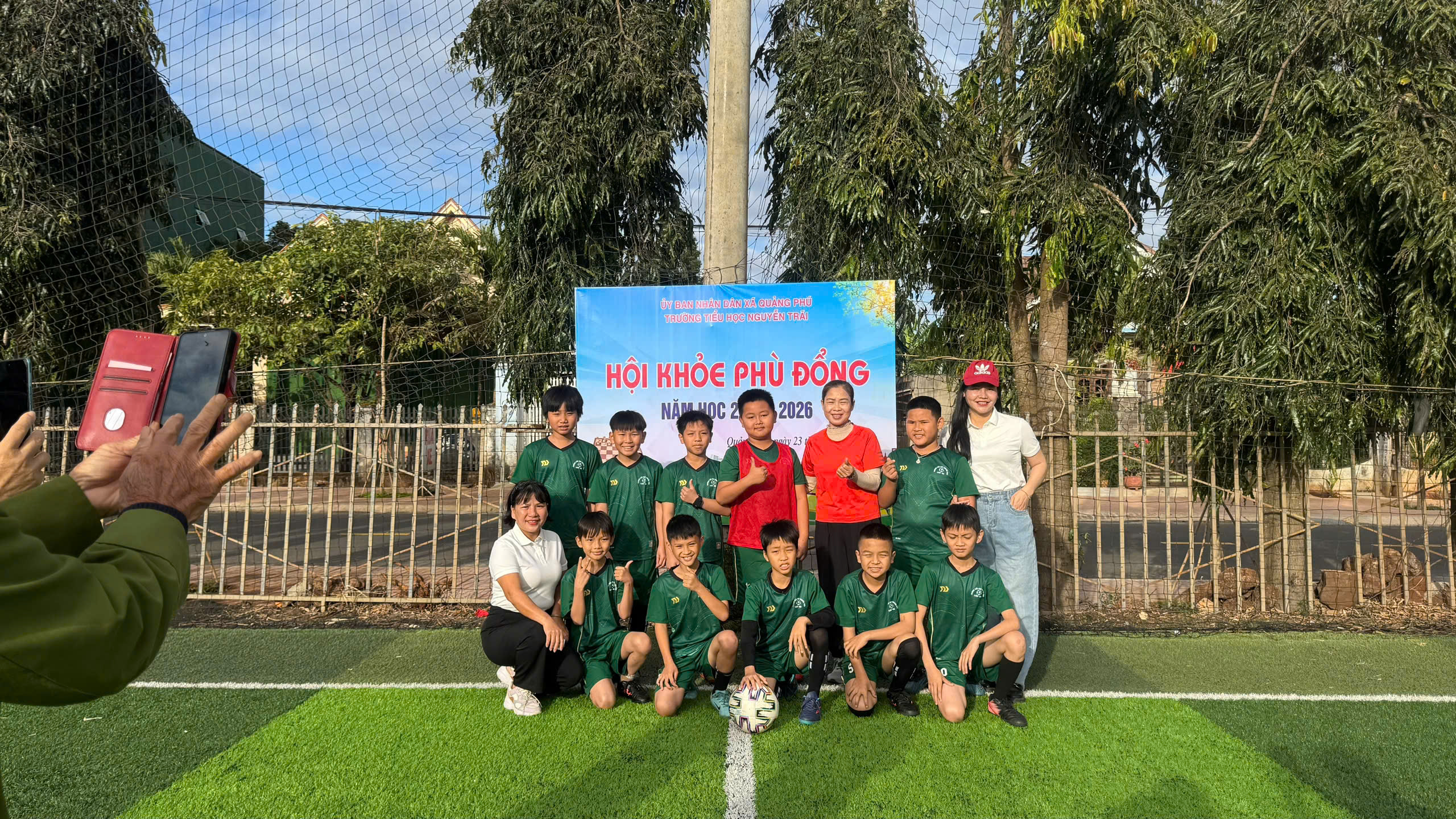 Hội khỏe Phù Đổng Trường Tiểu học Nguyễn Trãi được tổ chức trong hai ngày 23 và 24/1/2026 đã diễn ra sôi nổi và thành công tốt đẹp. Trong khuôn khổ hội thi, nội dung bóng đá nam khối 4, 5 đã thu hút sự tham gia tích cực của 7 lớp với tinh thần thi đấu nhiệt huyết. Các đội bóng đã cống hiến nhiều trận đấu hấp dẫn, thể hiện kỹ thuật, sự khéo léo và tinh thần đoàn kết cao. Kết quả chung cuộc, lớp 4D đã xuất sắc giành cúp vàng của giải đấu. Đặc biệt, em Đậu Đình Thắng đã ghi được 17 bàn thắng ấn tượng và trở thành vua phá lưới của giải. Hội khỏe Phù Đổng không chỉ là sân chơi thể thao bổ ích mà còn góp phần rèn luyện sức khỏe, tinh thần đồng đội và tạo không khí hào hứng, vui tươi cho các em học sinh trong toàn trường