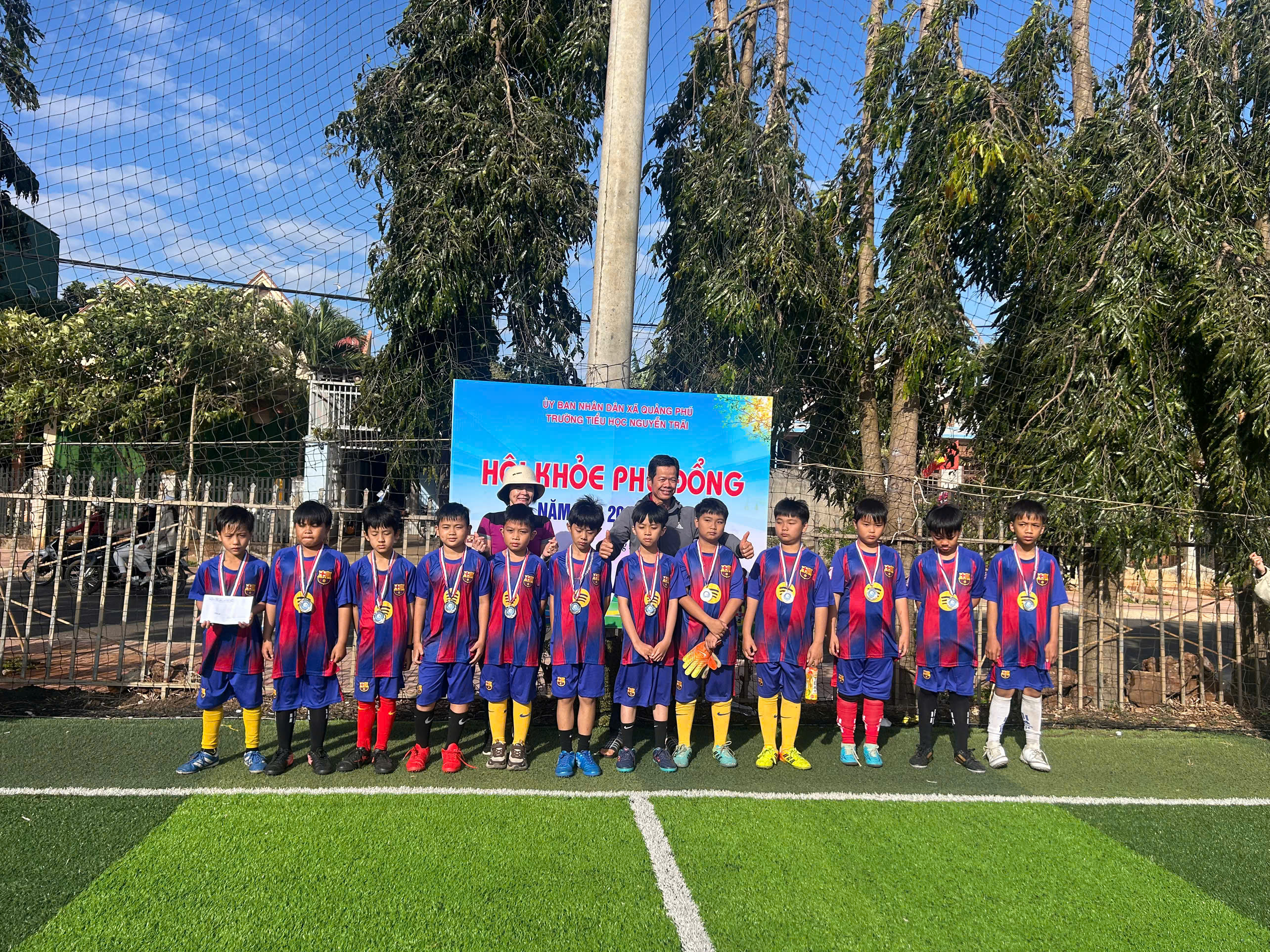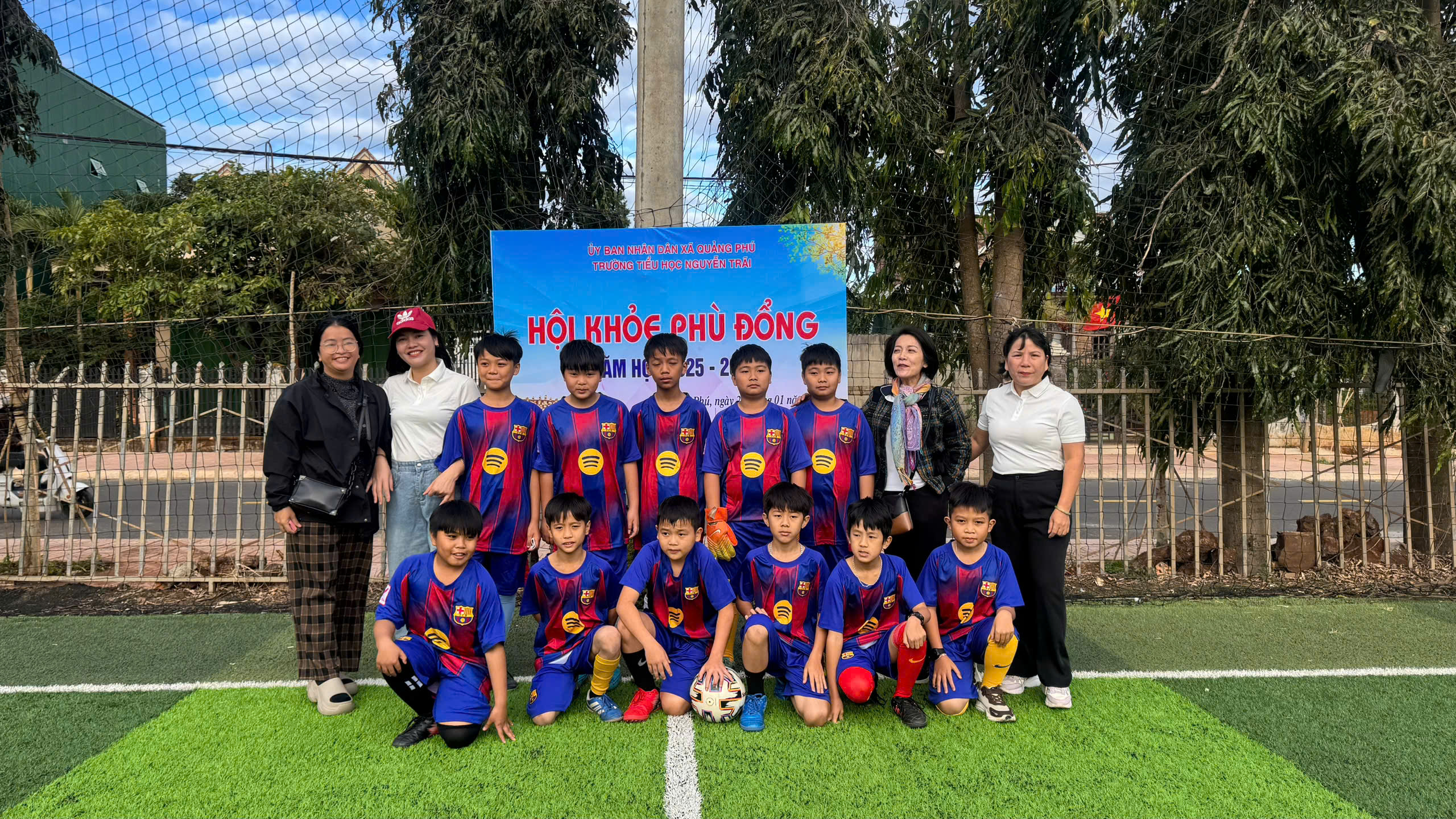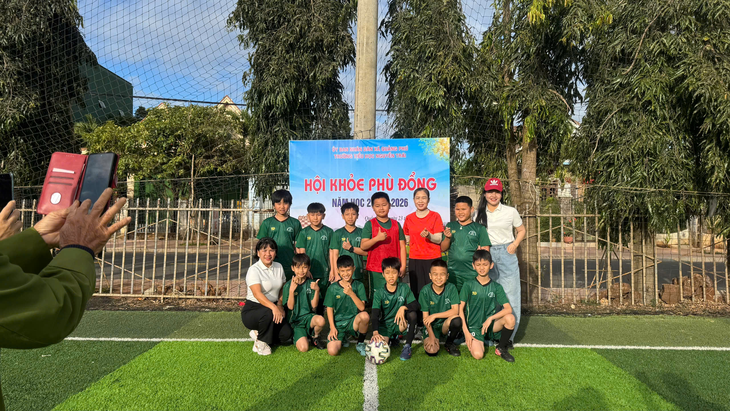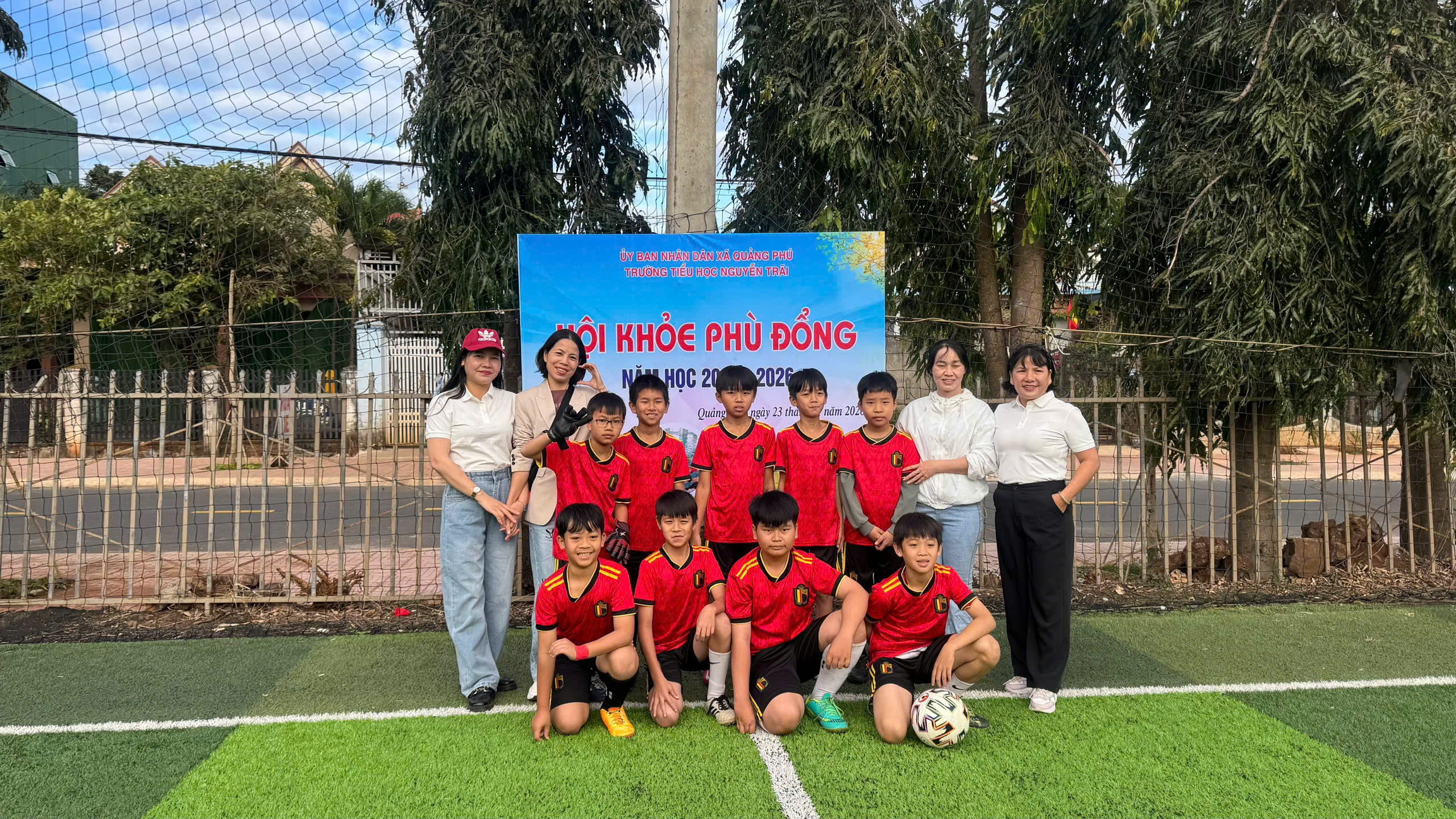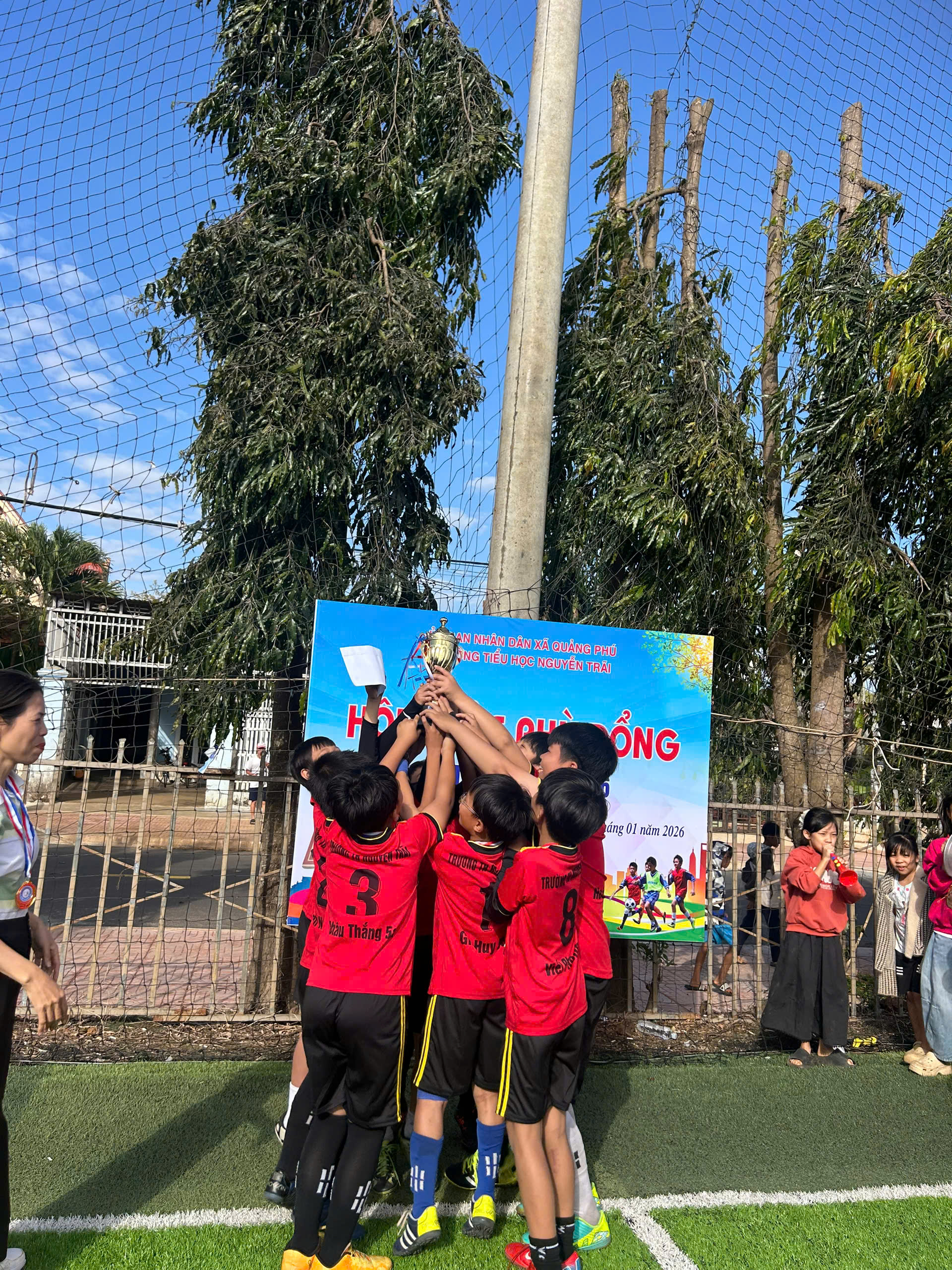 Hội khỏe Phù Đổng Trường Tiểu học Nguyễn Trãi được tổ chức trong hai ngày 23 và 24/1/2026 đã diễn ra sôi nổi và thành công tốt đẹp. Trong khuôn khổ hội thi, nội dung bóng đá nam khối 4, 5 đã thu hút sự tham gia tích cực của 7 lớp với tinh thần thi đấu nhiệt huyết. Các đội bóng đã cống hiến nhiều trận đấu hấp dẫn, thể hiện kỹ thuật, sự khéo léo và tinh thần đoàn kết cao. Kết quả chung cuộc, lớp 4D đã xuất sắc giành cúp vàng của giải đấu. Đặc biệt, em Đậu Đình Thắng đã ghi được 17 bàn thắng ấn tượng và trở thành vua phá lưới của giải. Hội khỏe Phù Đổng không chỉ là sân chơi thể thao bổ ích mà còn góp phần rèn luyện sức khỏe, tinh thần đồng đội và tạo không khí hào hứng, vui tươi cho các em học sinh trong toàn trường