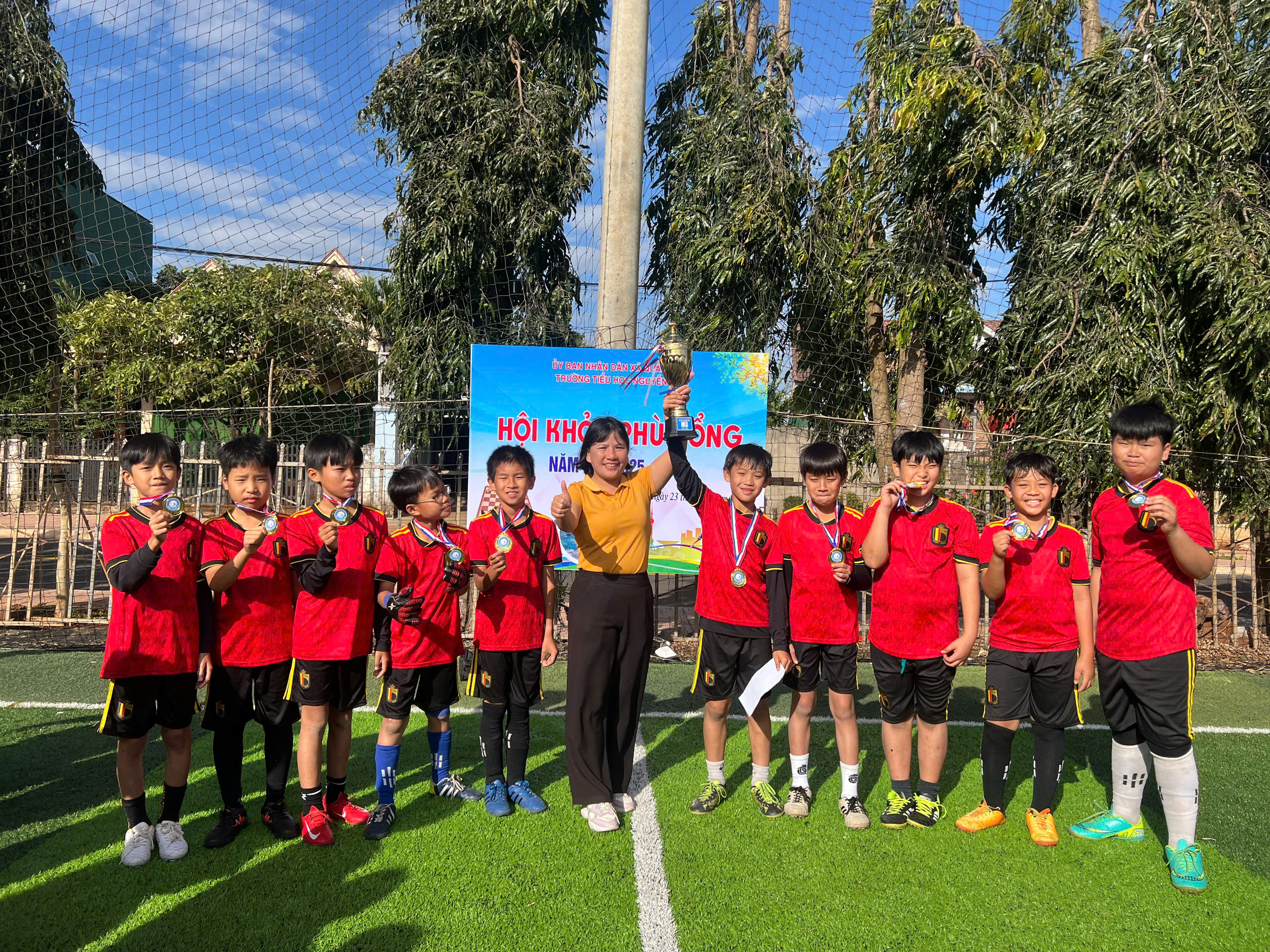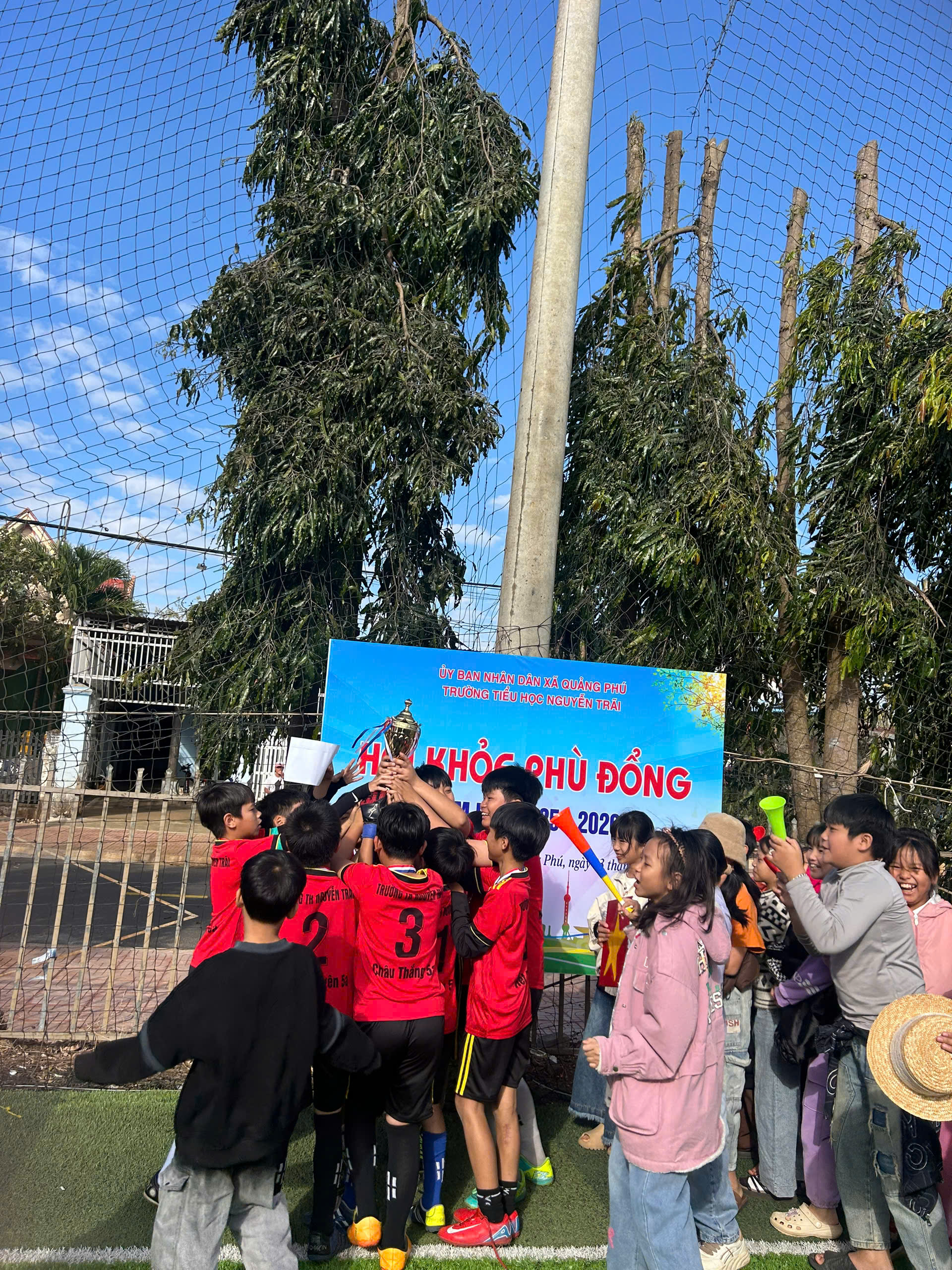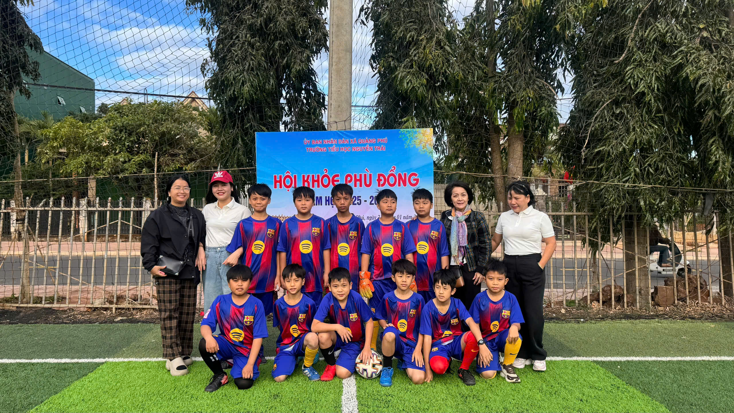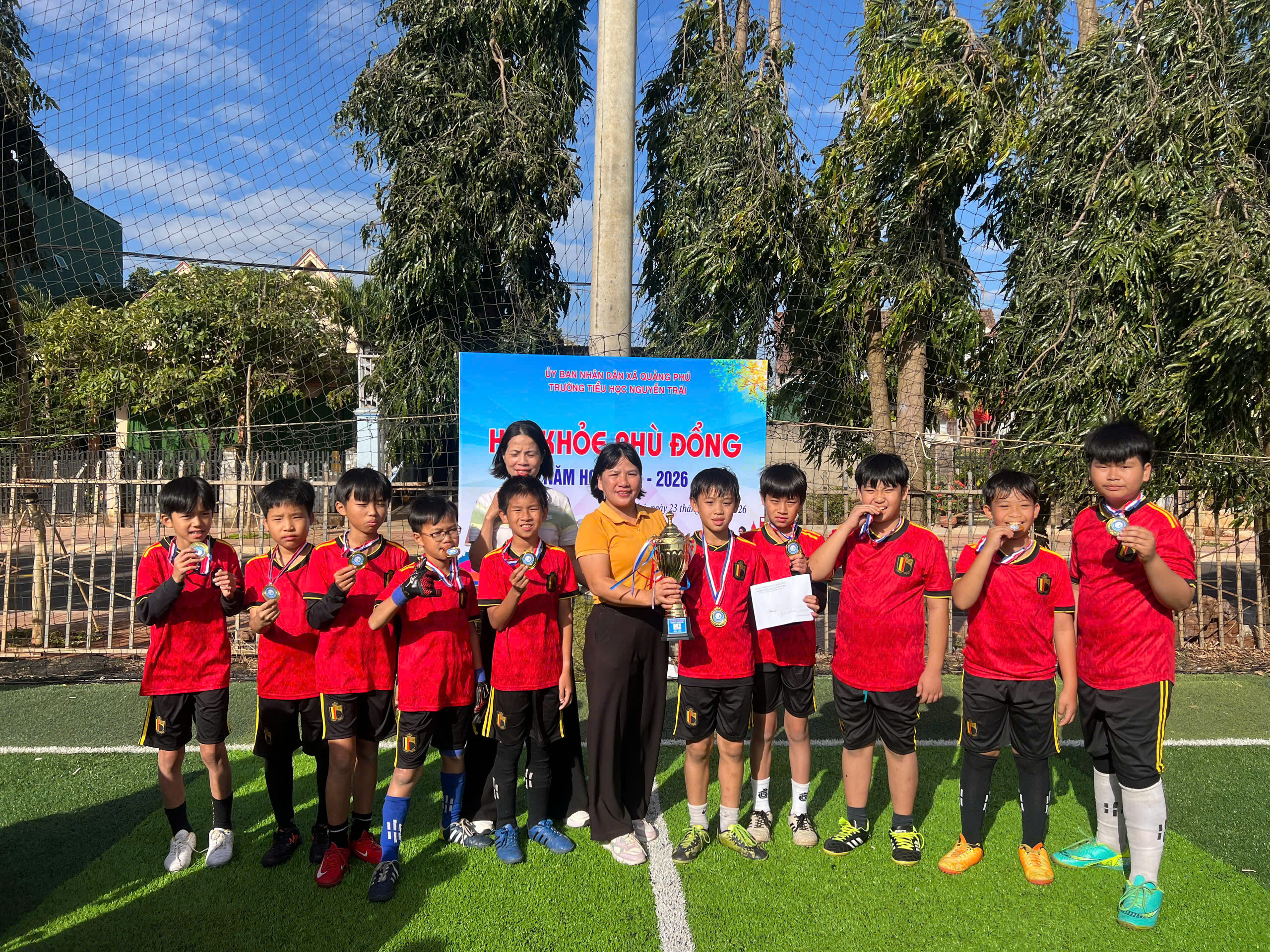 Hội khỏe Phù Đổng Trường Tiểu học Nguyễn Trãi được tổ chức trong hai ngày 23 và 24/1/2026 đã diễn ra sôi nổi và thành công tốt đẹp. Trong khuôn khổ hội thi, nội dung bóng đá nam khối 4, 5 đã thu hút sự tham gia tích cực của 7 lớp với tinh thần thi đấu nhiệt huyết. Các đội bóng đã cống hiến nhiều trận đấu hấp dẫn, thể hiện kỹ thuật, sự khéo léo và tinh thần đoàn kết cao. Kết quả chung cuộc, lớp 4D đã xuất sắc giành cúp vàng của giải đấu. Đặc biệt, em Đậu Đình Thắng đã ghi được 17 bàn thắng ấn tượng và trở thành vua phá lưới của giải. Hội khỏe Phù Đổng không chỉ là sân chơi thể thao bổ ích mà còn góp phần rèn luyện sức khỏe, tinh thần đồng đội và tạo không khí hào hứng, vui tươi cho các em học sinh trong toàn trường