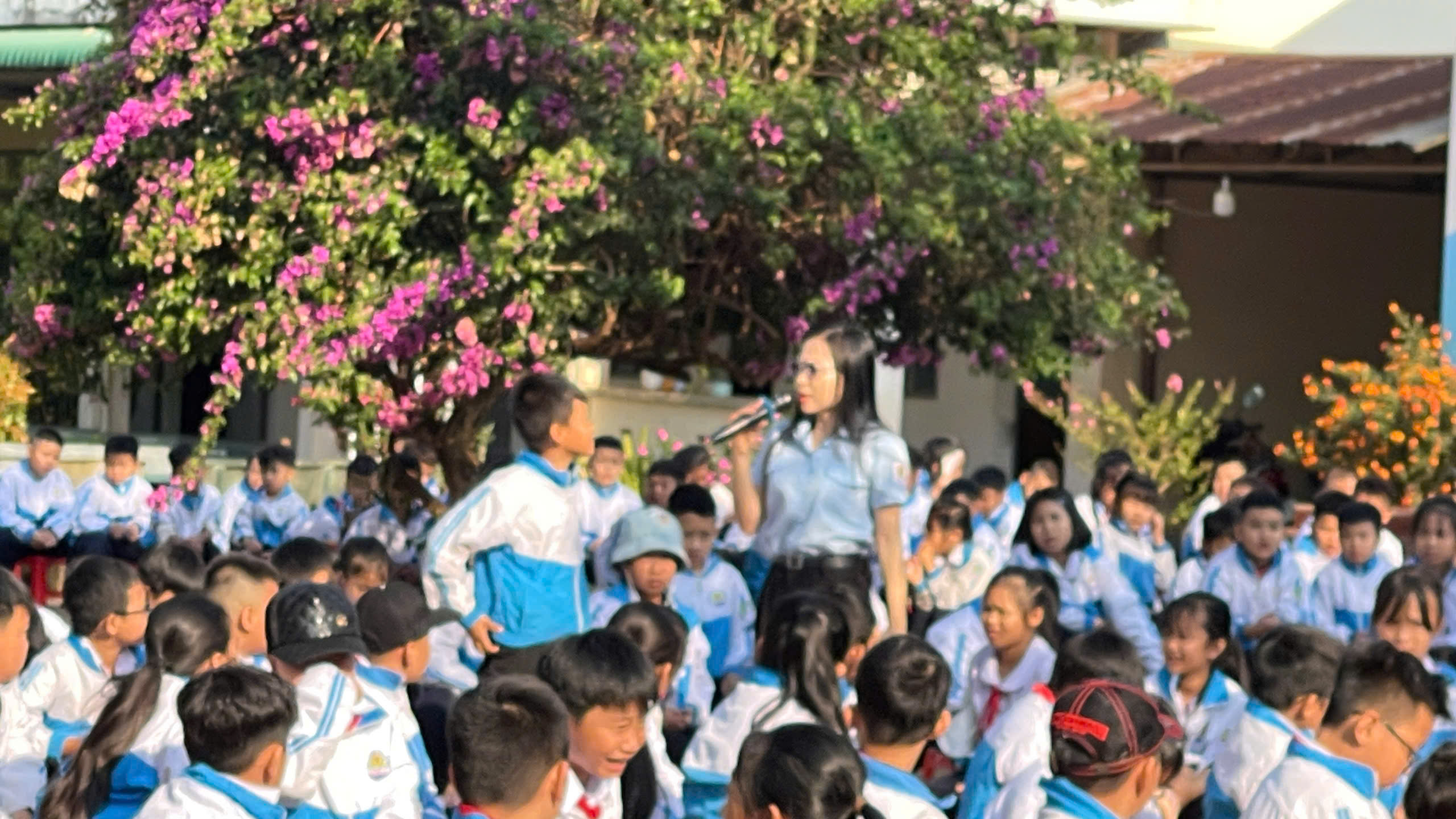 Buổi tuyên truyền diễn ra sôi nổi với sự tham gia tích cực của các em học sinh.
