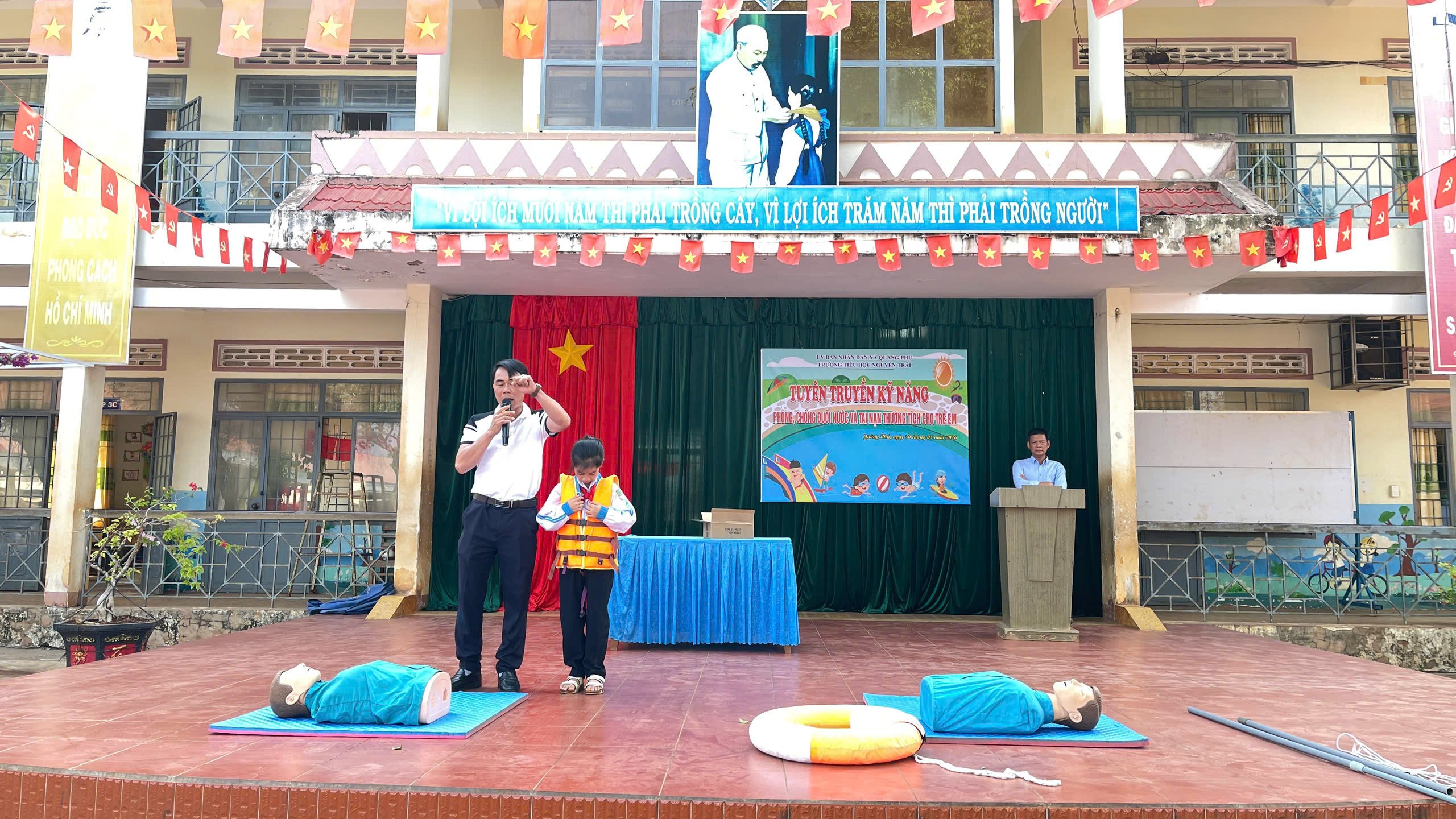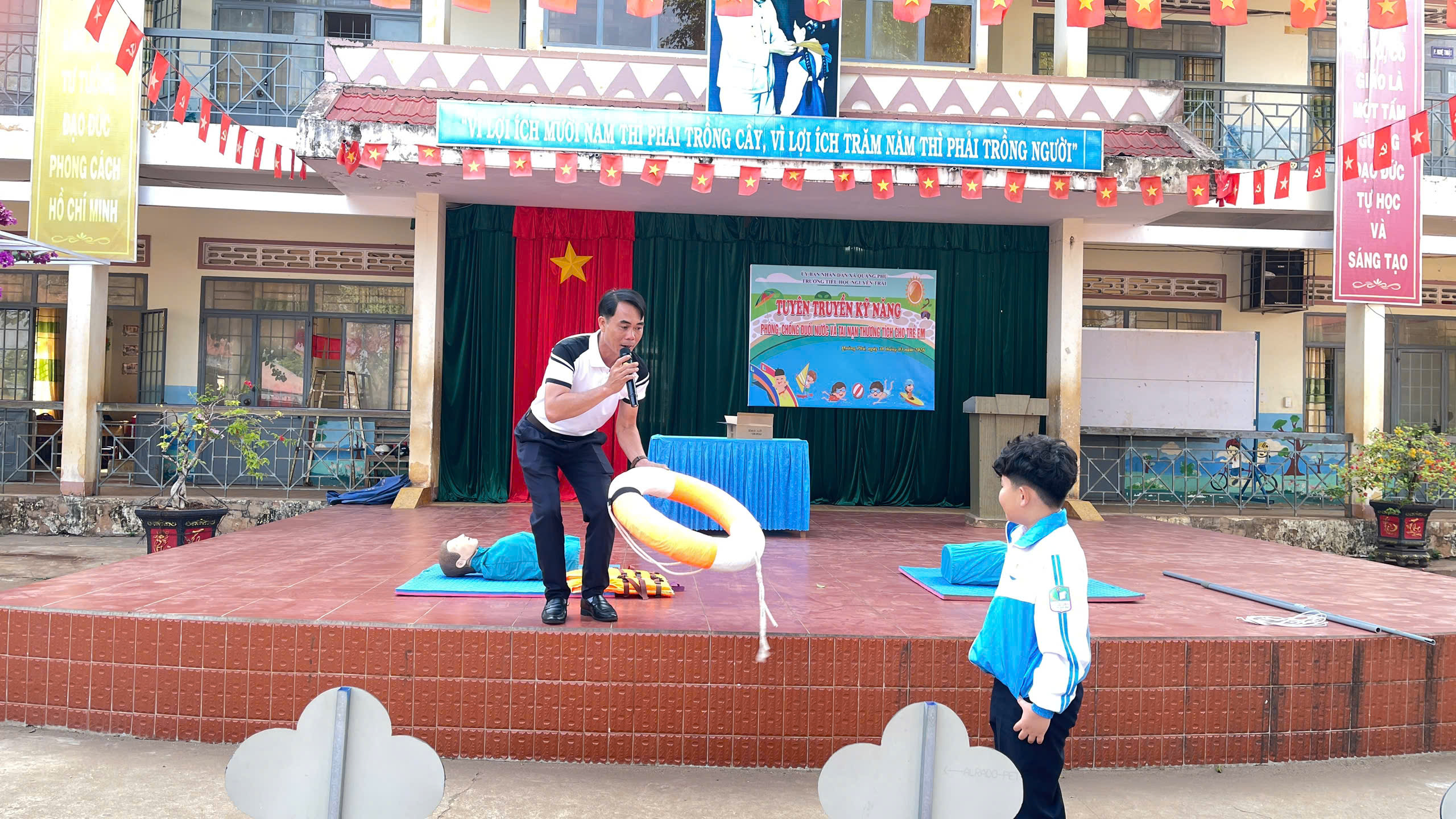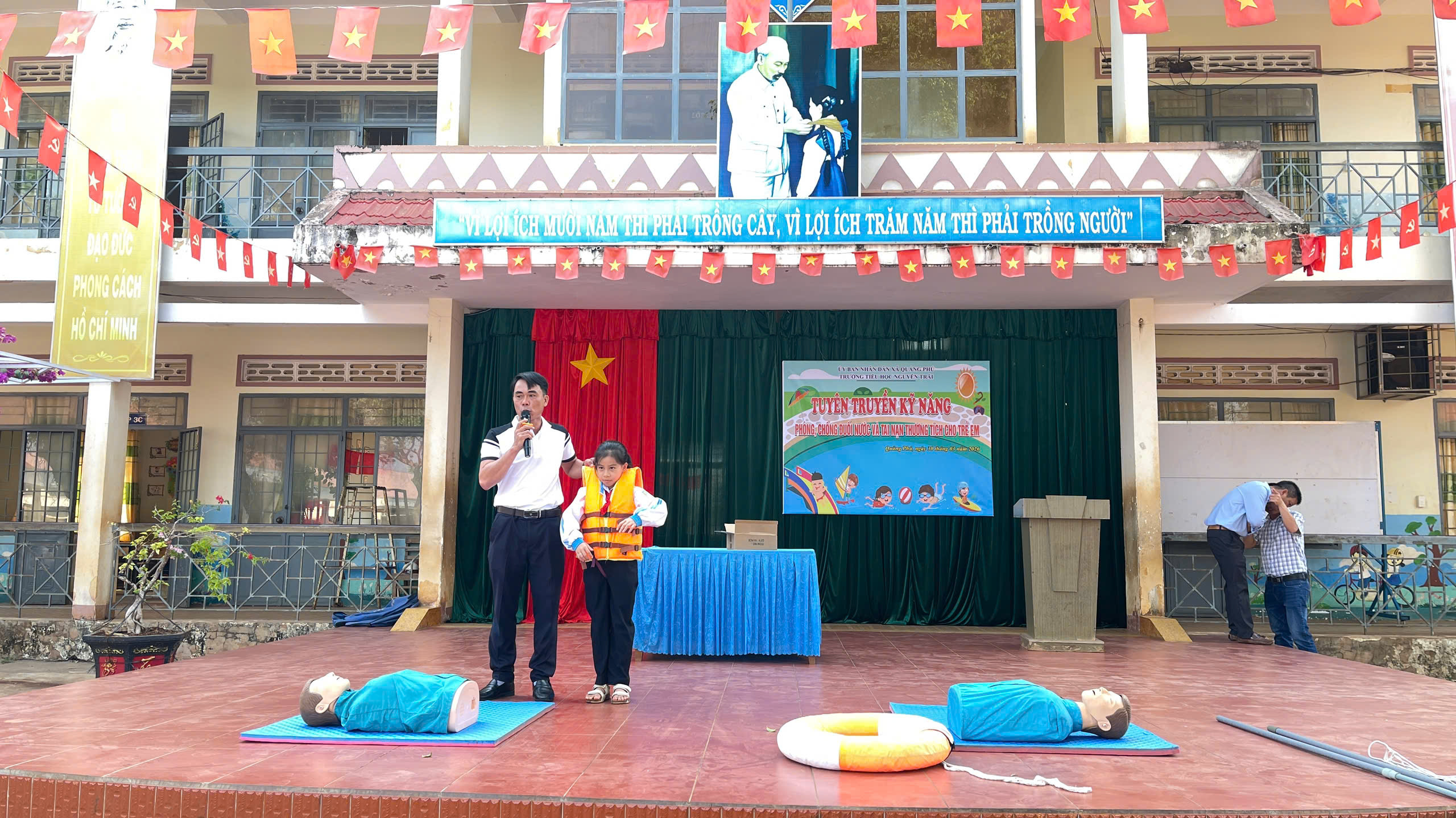 Sáng ngày 30/3/2026, Trường Tiểu học Nguyễn Trãi đã tổ chức buổi tuyên truyền kỹ năng “Phòng chống đuối nước, tai nạn thương tích cho trẻ em” dành cho toàn thể học sinh trong nhà trường.