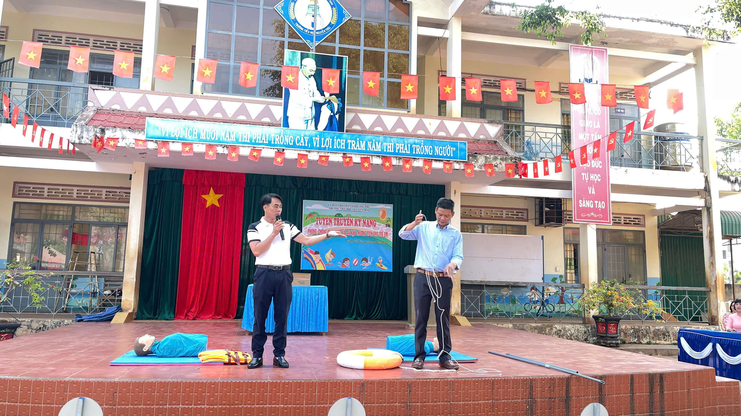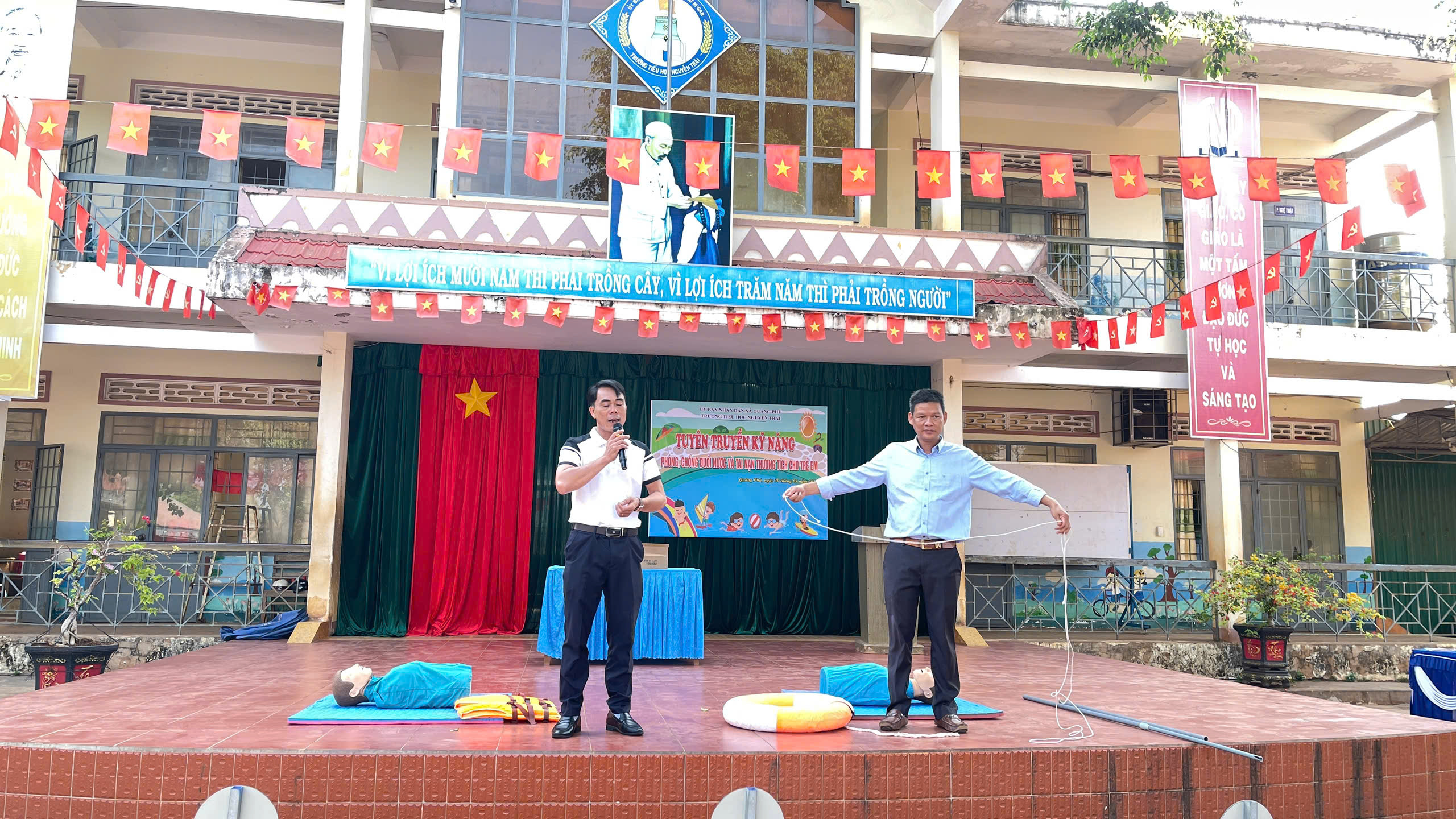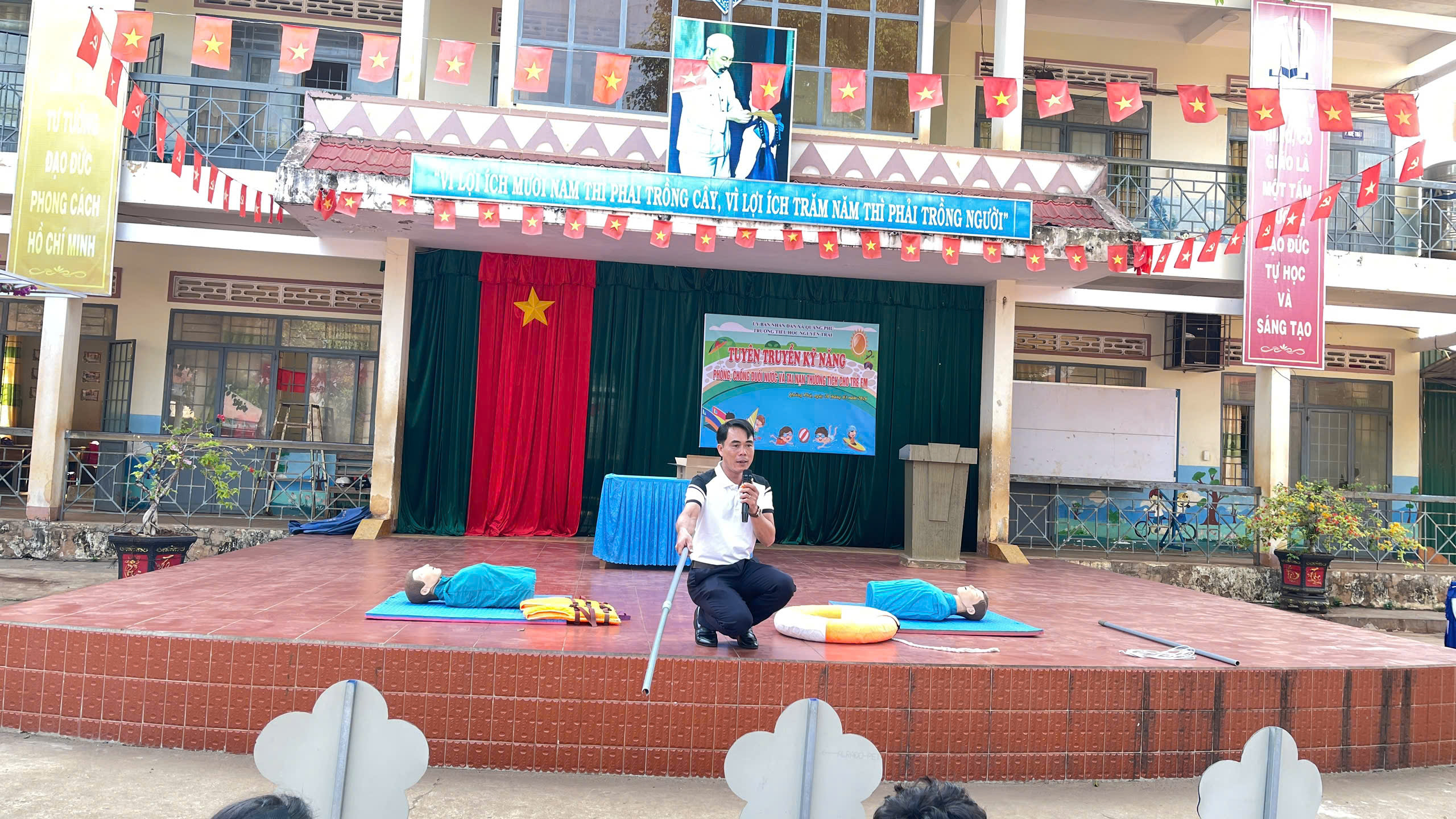 Sáng ngày 30/3/2026, Trường Tiểu học Nguyễn Trãi đã tổ chức buổi tuyên truyền kỹ năng “Phòng chống đuối nước, tai nạn thương tích cho trẻ em” dành cho toàn thể học sinh trong nhà trường.